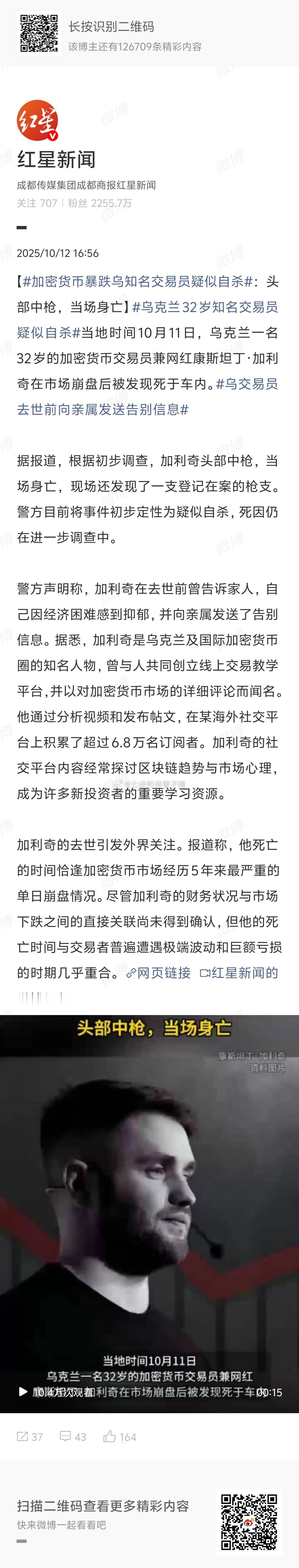 乌克兰32岁知名交易员疑似自杀他也上天台了?