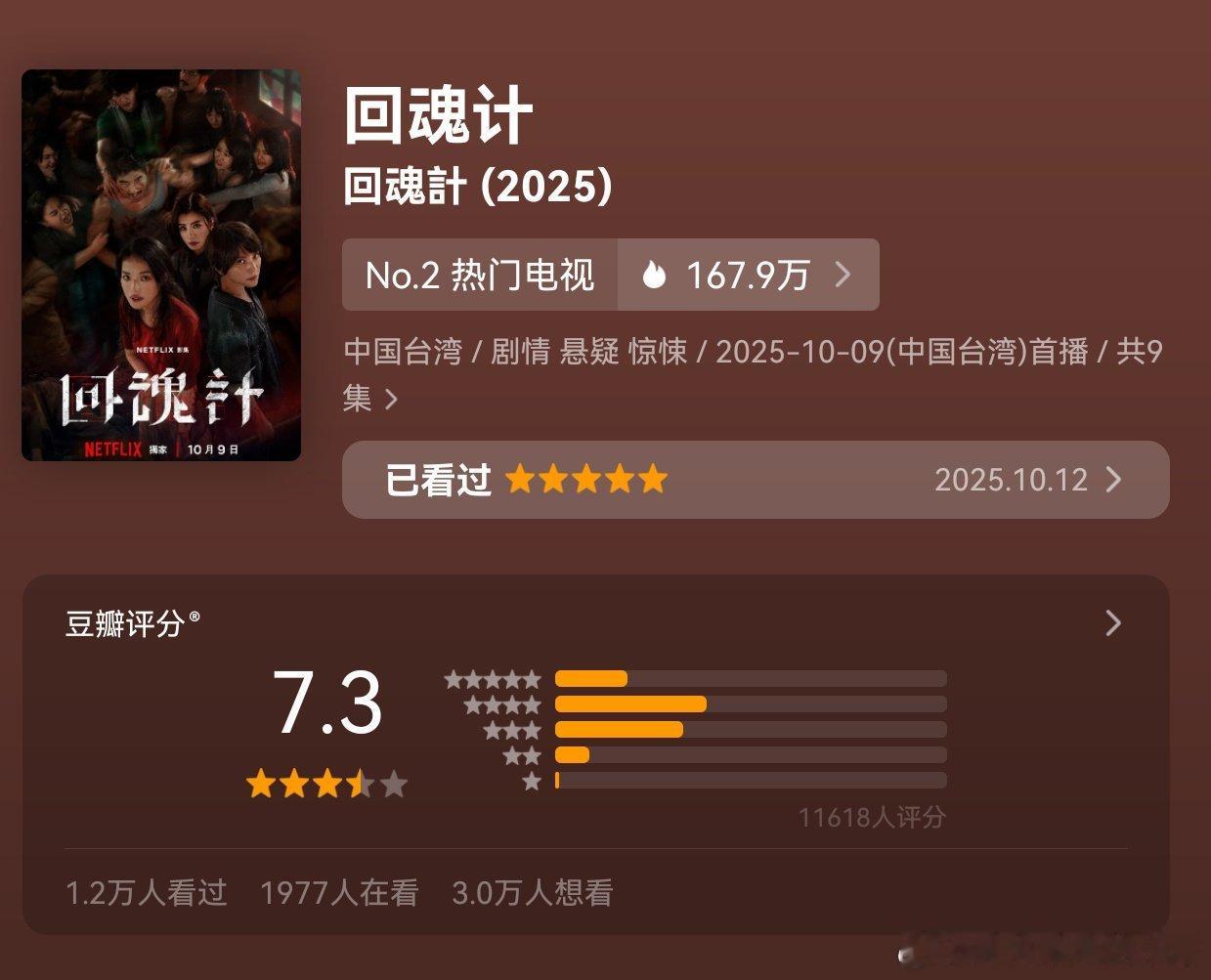 尹浩宇回魂计上线第三天,netflix港台双第一,人人视频热播榜热搜榜均第一,豆瓣开分 7.3 分,Netflix 精选片段和封面都是尹浩宇饰演的 Eason[点赞][点赞]