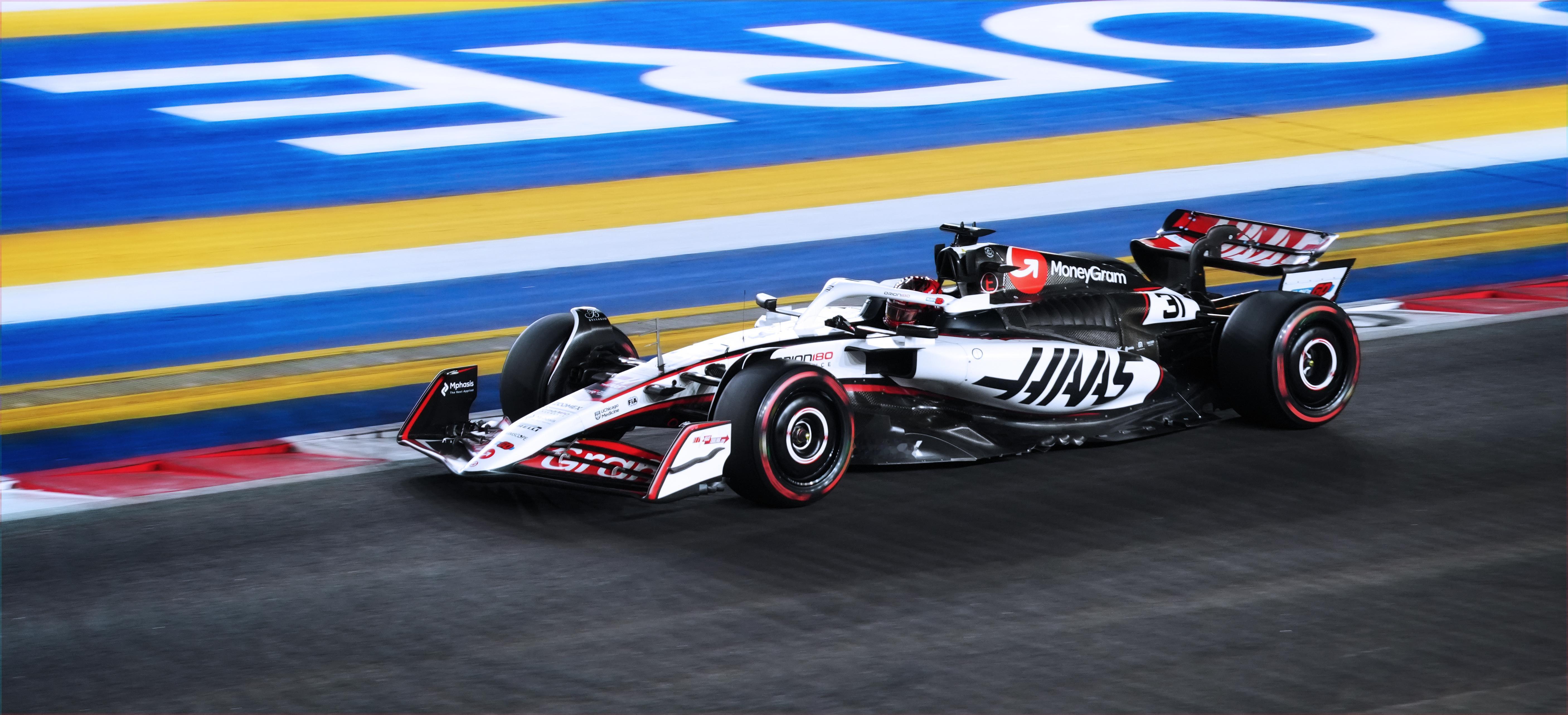 哈斯车队的美国大奖赛特别版涂装F12025F1美国大奖赛