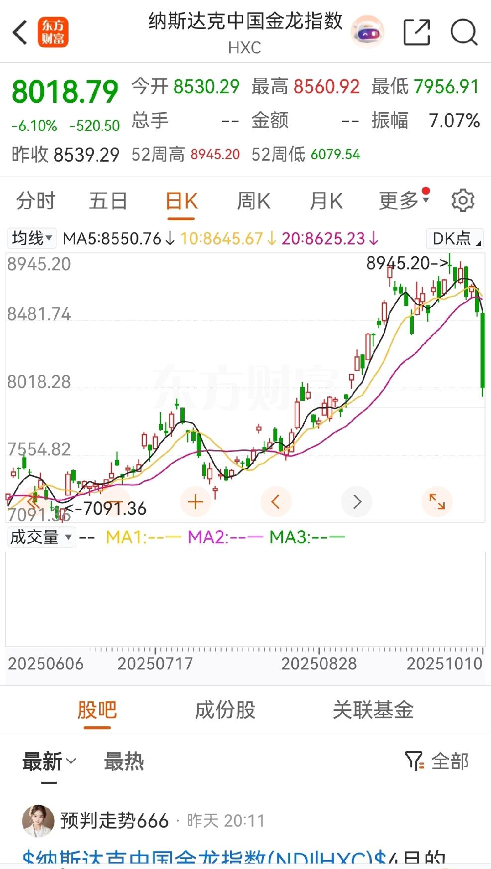 周末金毛又发烧了,纳斯达克中国金龙指数大跌6.1%,后市该如何应对呢? 首