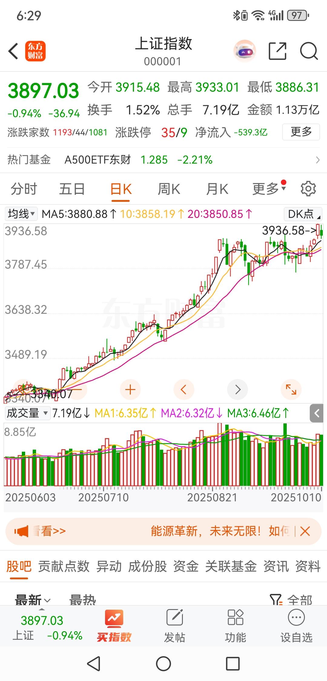 周末金毛又发烧了,纳斯达克中国金龙指数大跌6.1%,后市该如何应对呢? 首先大A股周五是单日反转形态,这种情况倘若承接盘不足,肯定是要减仓的。同时,现在是牛市,应该没有多少人有异议的!既然是牛市,出现急跌是好事,调整两三天,给场外踏空资金进场的机会!因为大A股走到周四,本身就有调整的需求,大幅度低开利空来袭极有可能一步到位。 今天开盘倘若低开超过4%,大概率是优质股的机会,低开1%左右不好判断,等尾盘再说,小幅度低开甚至高开,这个应该不太可能,但是如果出现这种极限走势,应该观望或者等反包周五大阴,尾盘再择机买一点,如果仓位多的还可以持股观望。