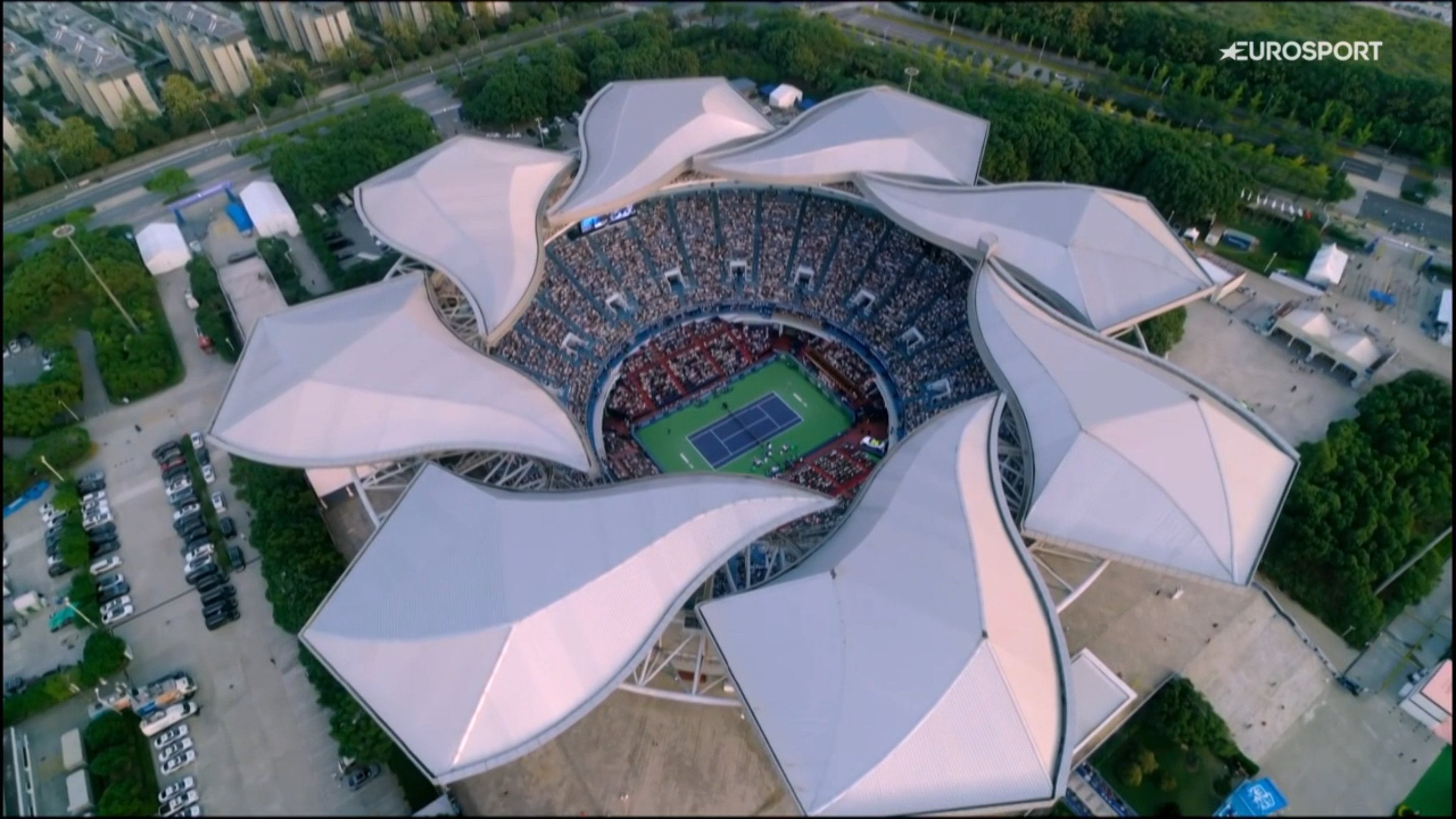 昨天决赛转播中除了两位表兄弟的表现,我印象最深的就是无人机视角下无数个美轮美奂的旗忠中央场鸟瞰镜头。无论在夕阳映照下,还是夜幕华灯中,都美得近乎不真实。图1明明是实拍,是不是有种ai感?有一位资深网球博主把这一幕发到了推上,配文:“全世界建筑最完美的网球场。”