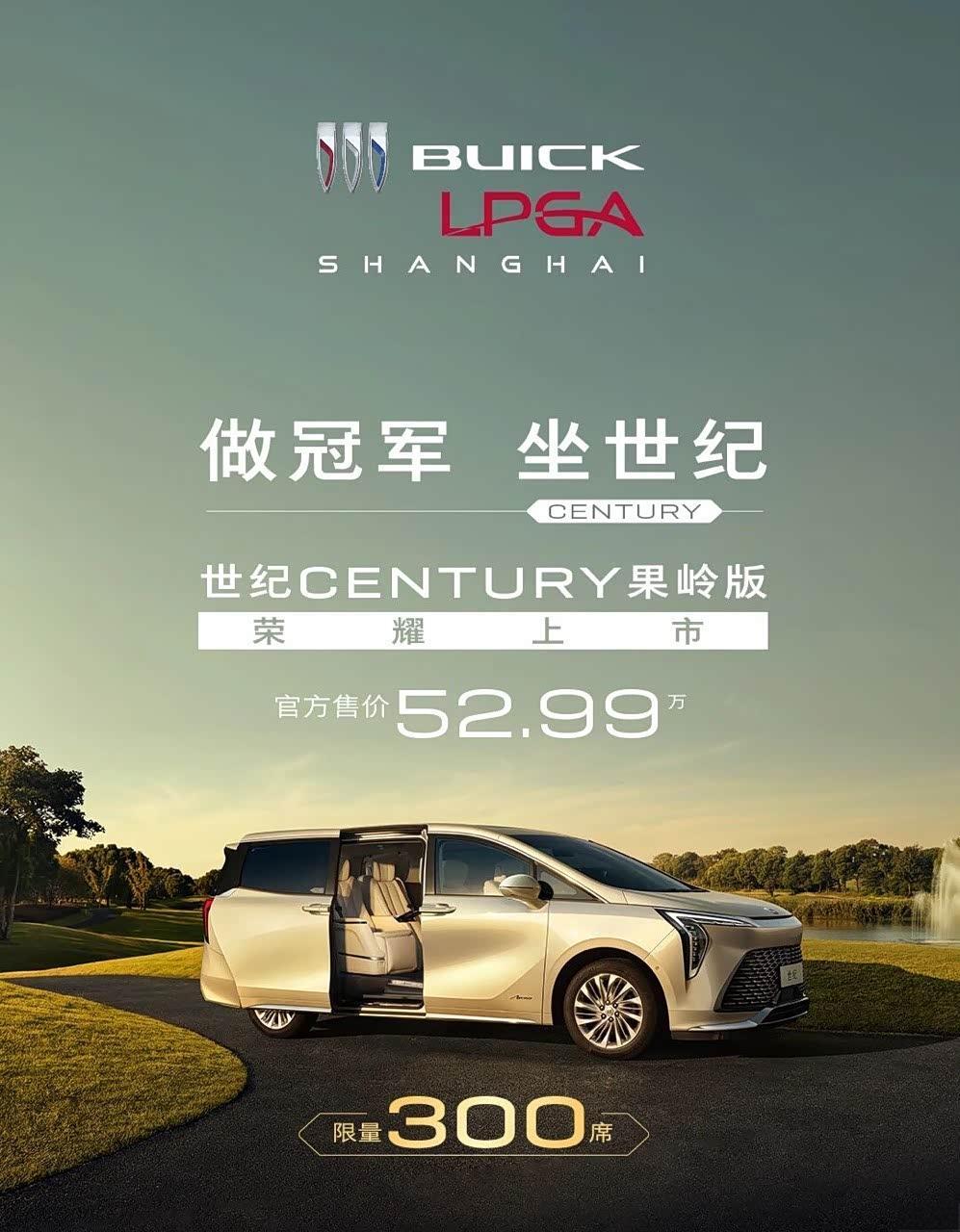 别克世纪CENTURY果岭版正式上市,售价52.99万元,全球限量300台。新车为纪念别克与中国高尔夫运动携手20周年及LPGA赛事合作5周年而生,基于六座蕴世版打造,外观融入“冠军之耀”高尔夫主题标识,内饰配备LPGA赛事刺绣头枕+云感礼宾座椅,标配30英寸6K弧面屏、后排15.6英寸智慧屏及压缩机冰箱。车主专享TaylorMade定制高尔夫球包、ECCO联名鞋款及纯会员制球场贵宾权益,动力搭载2.0T+48V轻混系统(174kW/350N·m),匹配9AT变速箱与五连杆后悬架。这款车以“运动奢华”重新定义高端MPV,让商务出行与高尔夫生活完美融合。别克世纪别克世纪CENTURY果岭版限量车