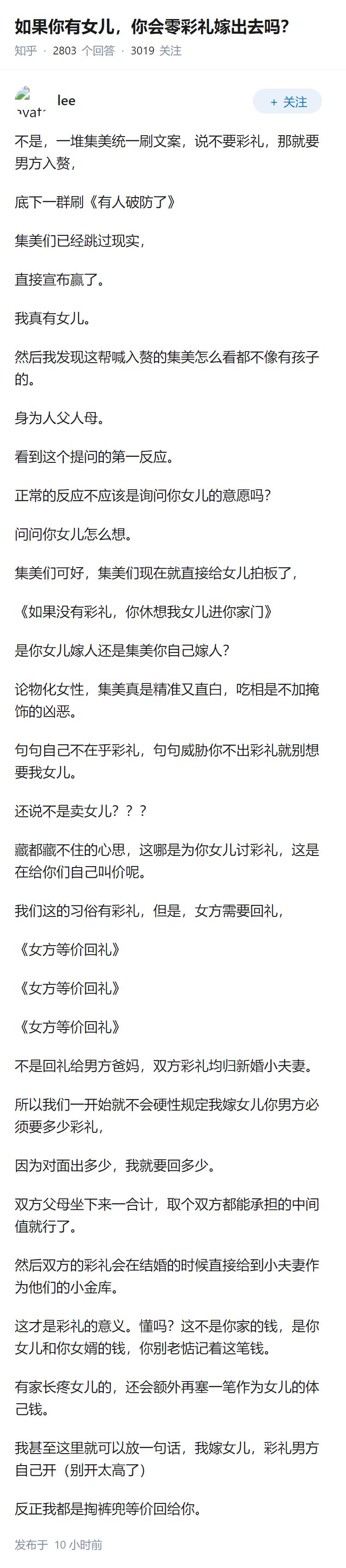 按照我们这一大家子的情况,是不会要的。我堂妹出嫁没要,夫家给,也留给他们俩夫妻了。我侄女以后出嫁肯定也不会要,我哥嫂不算富裕,但是养个闺女,自己养老没问题,肯定是先看对方人品。给彩礼肯定归小夫妻,陪嫁县城一套房吧。我家的也是闺女,希望她将来找到自己喜欢的人,但黄毛肯定不行。[doge]