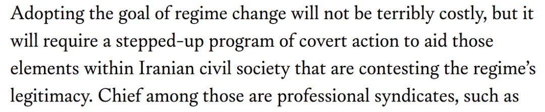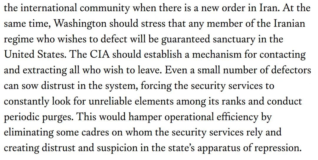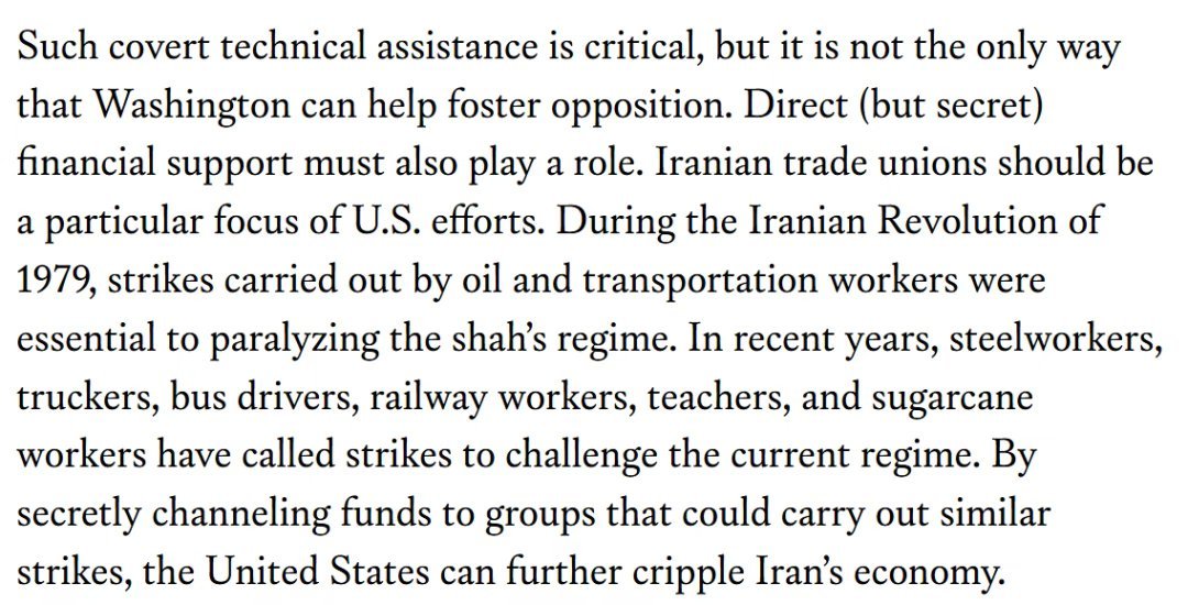 其实2020年外交事务杂志上小布什政府时期的国防部副部长Eric Edelman写过一篇关于伊朗的文章里面就讲了什么是“美国政府特殊联络人”。人家开篇第一句话就是说,这些人很廉价,把这些社会里的刺儿头挑出来,而且要注意到关键行业里挑。挑他们的目的就是让他们找各种机会闹事儿,破坏稳定。