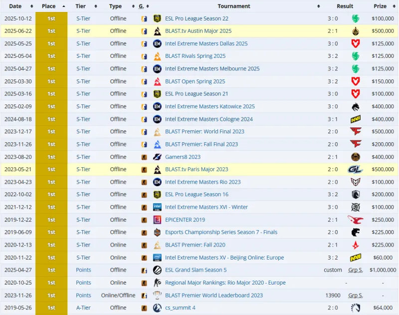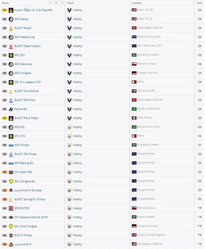 这也是Vitality队史首次夺冠后,赛事MVP不是ZywOo。此前,Vitality夺得的20个重要赛事冠军,其当届赛事MVP均为ZywOo。