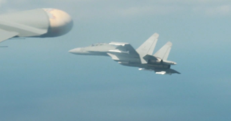 近日,加拿大军方曝光了一段视频画面,显示其CP-140巡逻机在东海执行所谓“追踪朝鲜船只”任务时,遭到中国歼-16和苏-30战斗机的拦截。