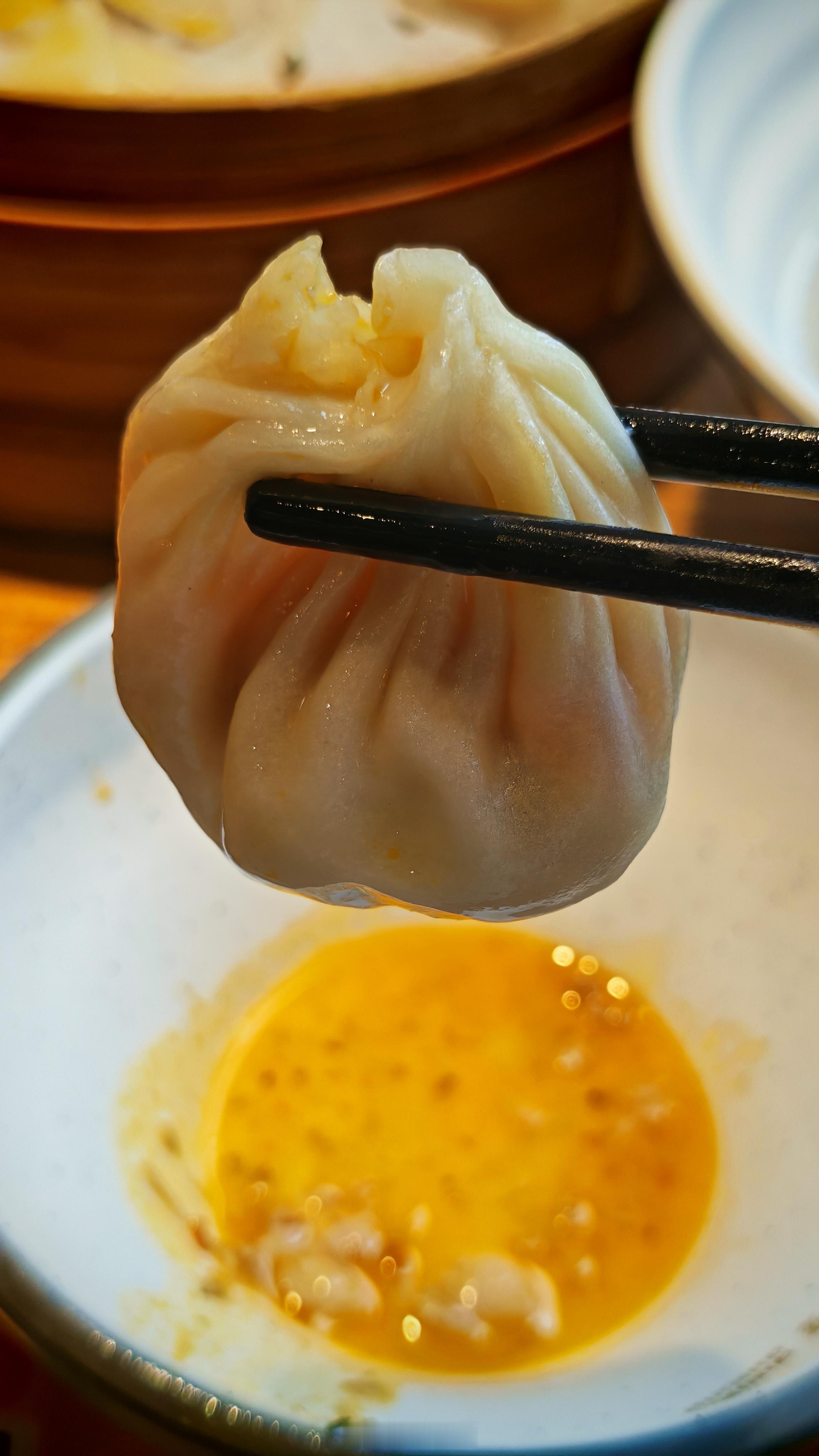 只有上海才能把这么清澈的鸭血汤做的很鲜美,鸭血嫩得duangduang的,蟹粉小笼包皮薄馅大,咬开直接爆汤汁,蟹黄的鲜味直冲脑门!