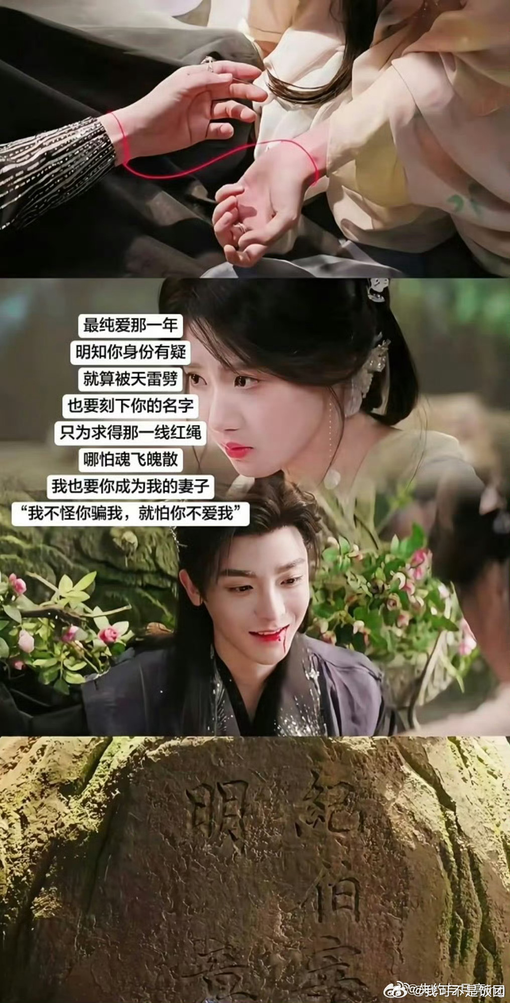 天呐,纪伯宰的爱永远拿的出手!吐血也要刻字,这一段直接梦回凤九刻三生石了[苦涩]
