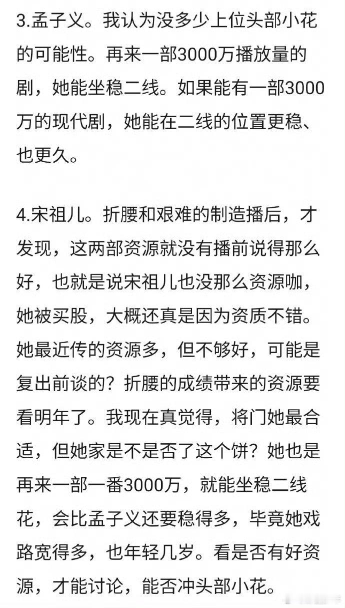 网友分析的95花格局网友分析95花格局 赵露思、虞书欣、白鹿、宋祖儿、孟子义,这五位确实是95花中热度与作品双在线的代表!网友这份格局分析,精准戳中每位小花的独特优势,有人靠甜妹人设圈粉,有人凭演技实力突围,说是当下95花的核心阵营,真的很有道理!