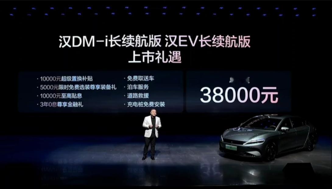 此次,汉DM-i长续航版共推出4款车型,补贴后售价15.98万~18.98万元;汉EV长续航版共推出3款车型,补贴后售价17.38万~20.58万元(10.31日前完成购车可享1万元超级置换补贴)。同时,比亚迪还为用户准备了包含置换补贴在内的至高价值3.8万元七大礼遇。