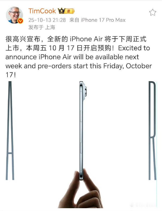 iphoneair本周预购本想去香港看看真机,奈何一直忙着没去上。这下国行发售了