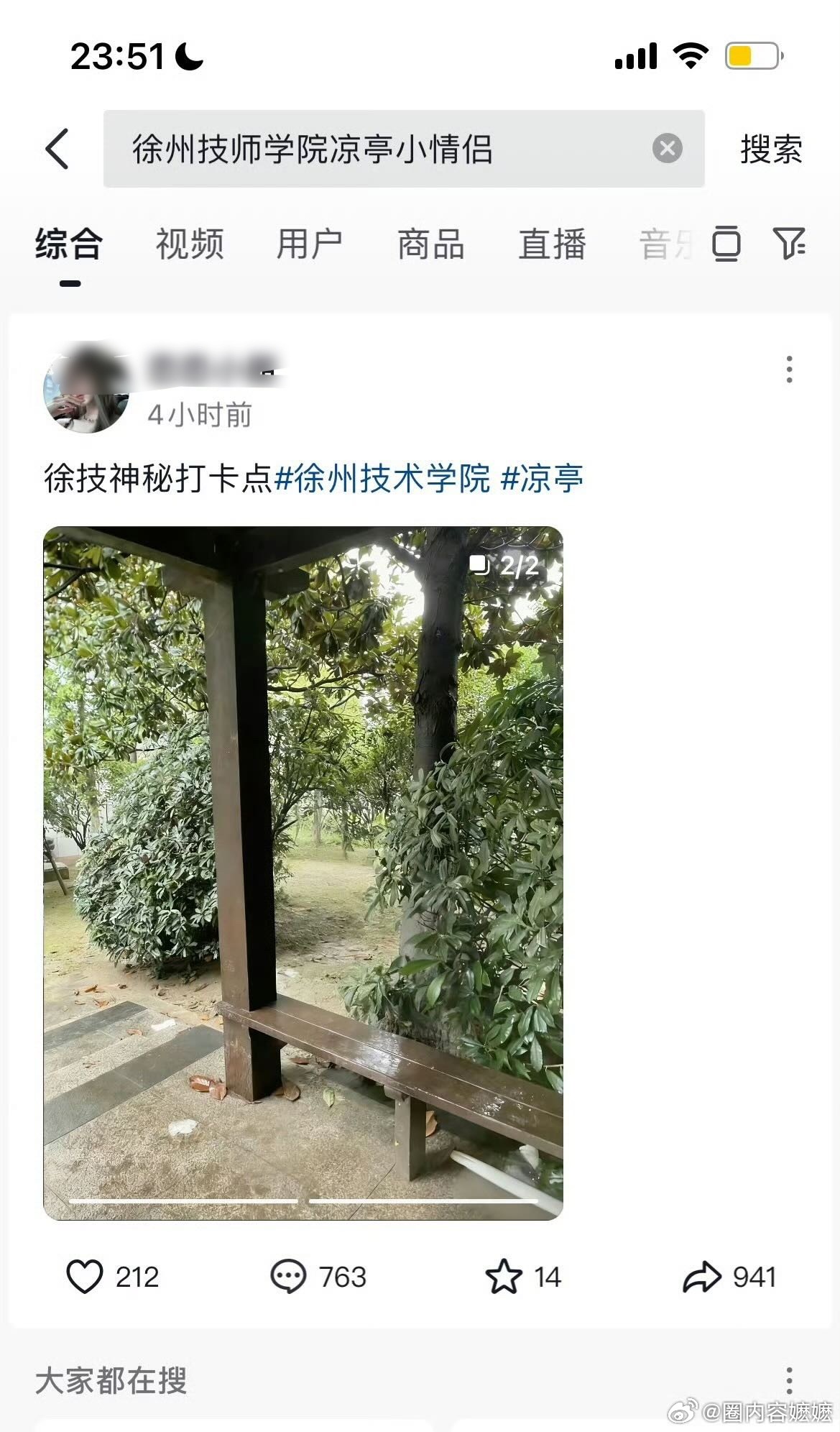 徐州技师学院你俩是成功带🔥了一个打卡地,"凉亭"太炸裂了"。吃瓜