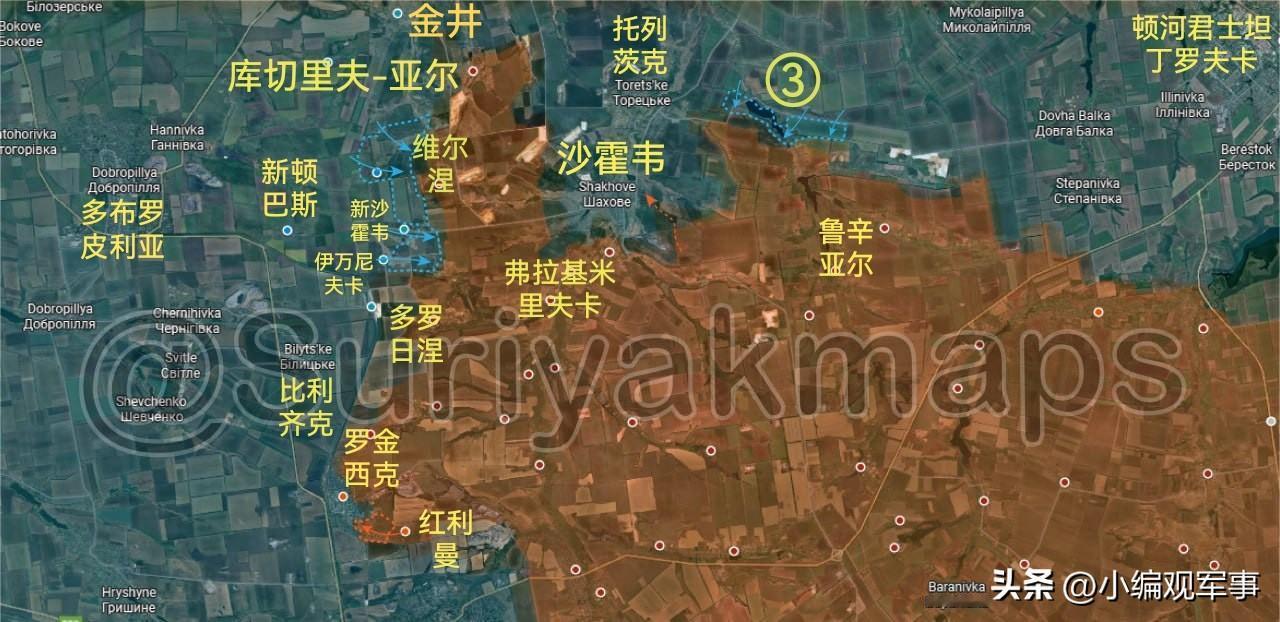 10月12日—13日俄乌最新战报: 1.库皮扬斯克前线: (10月12日,图一): 过去五天里,乌军从库皮扬卡河北岸撤退(俄军正在那里进行清剿行动),以避免被包围,并继续向库皮扬斯克市西南地区撤退。 (10月13日,图二): 乌军在继续从库皮扬斯克市西北部撤退的同时,收复了金德拉季夫卡村以西方向的一些阵地。 2.红军村和季米特洛夫前线(10月12日): ①过去两周里,俄军完全控制了新经济村及其周边地区(包括卡皮塔尔纳矿区的大部分地区和向南延伸至西尼扬斯克水库的战壕)(图三①)。 ②过去几小时里,俄军已开始对巴拉甘村和科扎茨克两个地方发动进攻,这两个地方距离季米特洛纳市仅一公里(图三)。 ③在红军村市,俄军将乌军赶出了杜尔尼亚克区,并推进至工业区,同时沿铁路线夺取了新的阵地(图三②)。 3.顿涅茨克州北部前线(10月13日): ①过去六天里,俄军占领了斯塔夫基村西北方向和德罗比舍韦村东北部的一些阵地(图四)。 ②俄军开始向扎里奇涅村以西推进,试图占领邻近的森林区(图四)。 4.沙霍韦前线(10月13日): ①随着增援部队的到来,乌军发动了反攻,收复了维尔涅村及其以东,以及新沙霍韦村和伊万尼夫卡村东部的一些阵地(图五)。 ②乌军收复了维诺库尔尼水库南部和东部的一些阵地(图五③)。 ③俄军在完全占领红利曼村后,从南部进入了罗金西克市(图五)。 ④俄军开始向沙霍韦村推进(图五)。 俄罗斯军事战报 俄罗斯前线战报 顿涅茨克战场 顿涅斯克战况 库皮扬斯克战斗 库皮扬斯克战况 库皮扬斯克战事