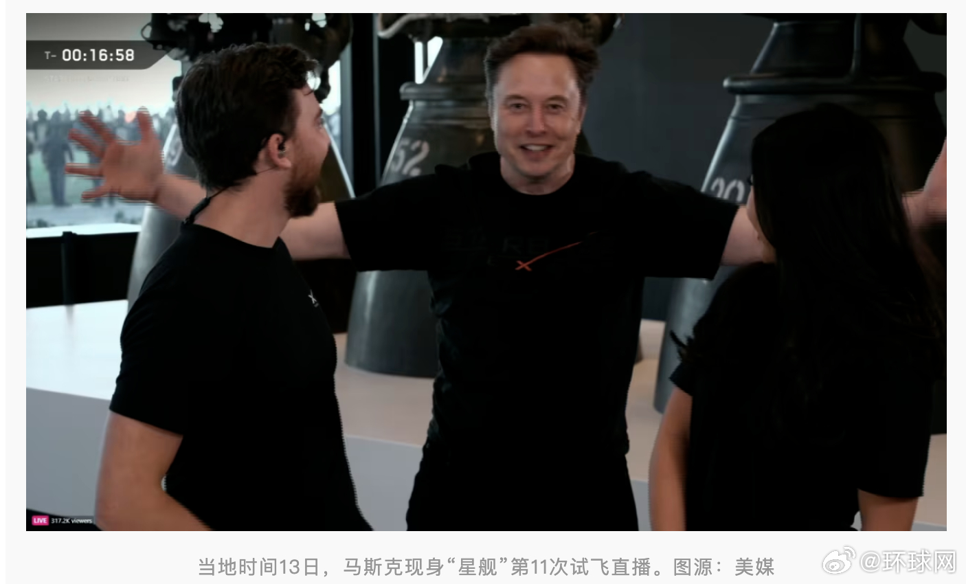 #星舰实施第11次试飞#【快讯!外媒:美国“星舰”实施第11次试飞,马斯克“意外现身”直播】#马斯克意外现身星舰第11次试飞直播# 据美国有线电视新闻网(CNN)、法新社报道,美国太空探索技术公司(SpaceX)新一代重型运载火箭“星舰”当地时间13日从美国得克萨斯州发射升空,实施第11次试飞。