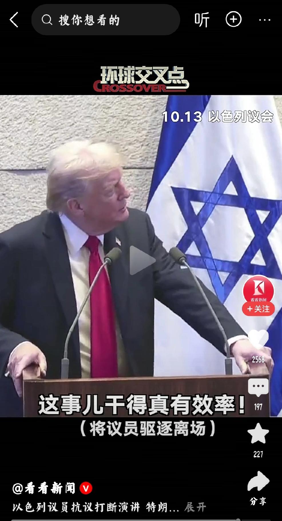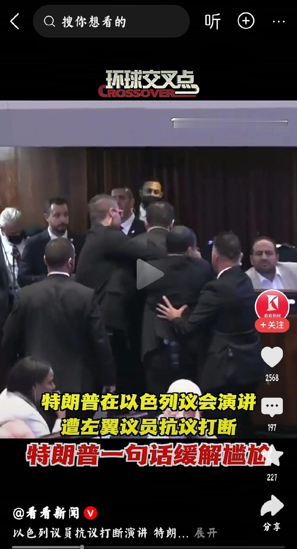 特朗普:证明有小聪明 个人认为:美国总统-特朗普在以色列议会演讲时遭遇干扰