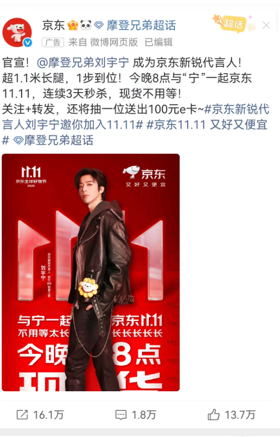 谁的DNA动了!刘宇宁成为京东11.11全线代言人,福利简直拿到手软!锁定10月