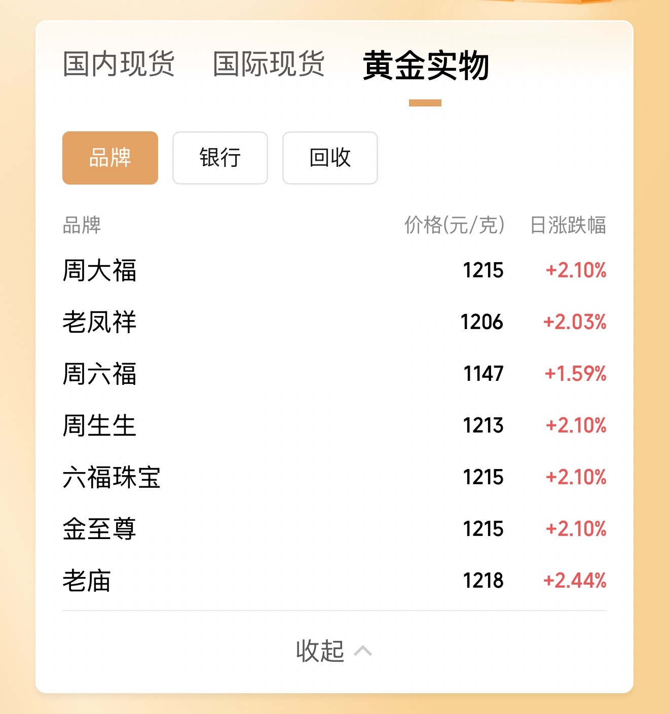 金饰价格涨到1213元来看看近20年的金价,其中有8年相对稳定,去年到今年金价直接翻倍。大盘价也即将破千[二哈]真印证了那句:早买早享受!