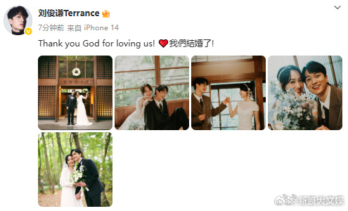 刘俊谦结婚刘俊谦官宣结婚14日,官宣结婚喜讯:“ThankyouGodf