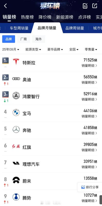 "鸿蒙智行"作为新势力杀入前三,充分说明了智能化、本土化体验正成为豪华市场的新竞争力,其旗下的尊界S800在9月的大型车零售销量中位列榜首