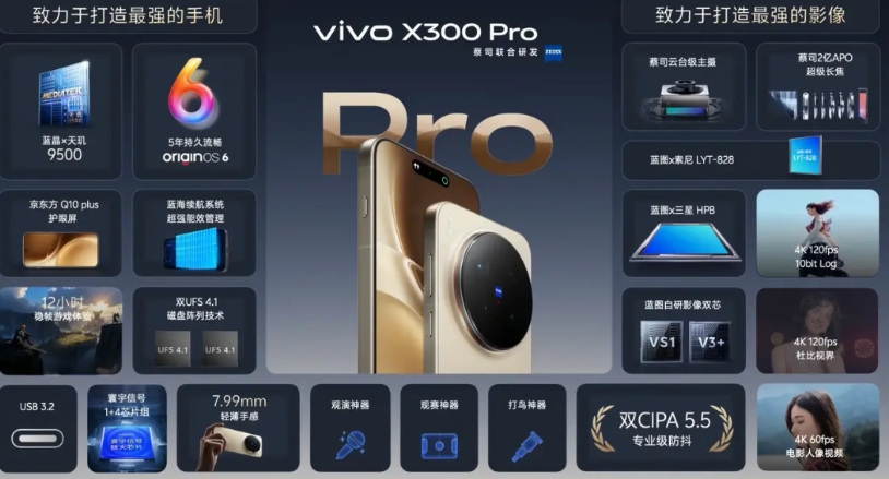vivo X300 Pro 正式发布,12GB+256GB 售价 5299 元、16GB+512GB 售价 5999 元、16GB+1TB 售价 6699 元、16GB+1TB 卫星通信版摄影师套装售价 8299 元。