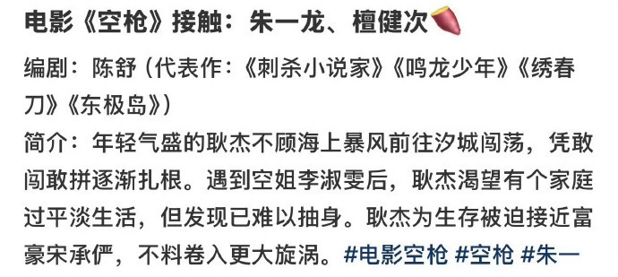 檀健次与朱一龙或将携手双男主电影,《空枪》的双雄设定打破颜值至上窠臼,以演技博弈