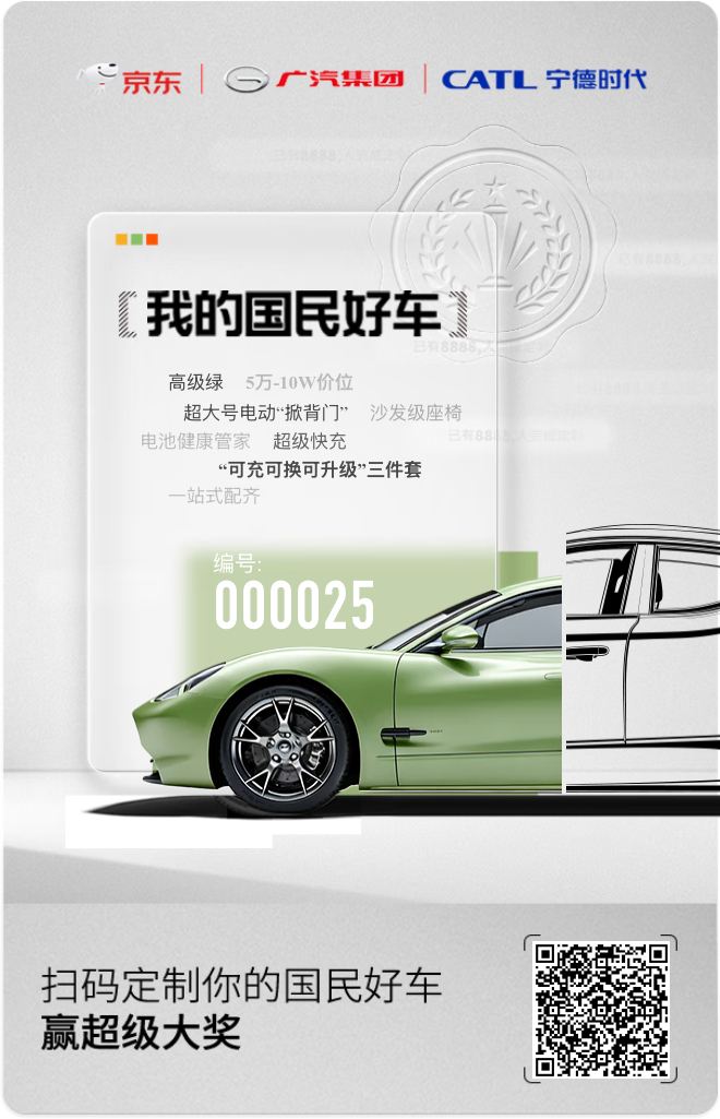 跟大家说一个神奇的事!京东汽车联合宁德时代旗下的时代电服和广汽集团共同推出一款“国民好车”你敢相信吗~这是一台的新能源车,我觉得这事儿还挺有意思的,就是以后你在京东上可以买车了!京东是独家购买渠道,线上买车这种体验挺魔幻的兄弟们,那么说回这台车,我觉得最重要的是安全性和空间利用性,这两点是尤为重要的,安全性放在第一麻雀虽小 五脏俱全才能让消费者更放心的去使用,空间利用性,这个是所有购买汽车用户比较看重的点,因为大多数是通勤和家用,虽然小但是很能装就有一种花小钱办大事的体验感!让我们期待一下这台车怎么样!