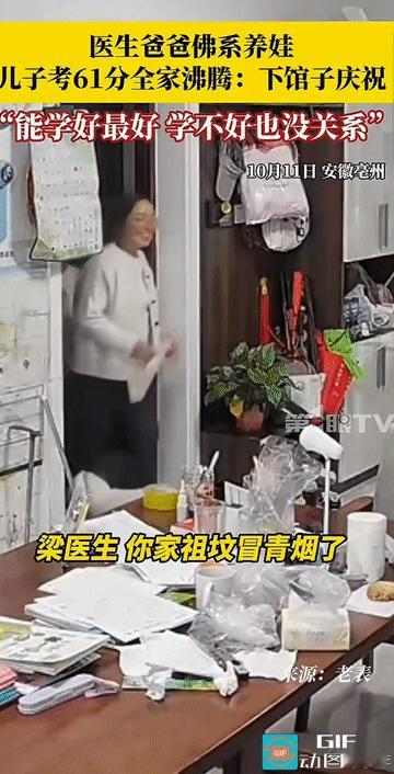 “这就是佛系养娃吗?”安徽亳州,全家欢呼声冲破屋顶,妈妈笑着大喊“祖坟冒青烟”,爸爸兴奋地张罗下馆子庆祝——这一切,竟然不过是为了孩子一张61分的数学试卷! 来源:【定陶融媒】 “梁医生,你家祖坟冒青烟了,恁儿考了61分。”妈妈拿着试卷,和三个孩子走进家门,笑着向坐在沙发上的爸爸报喜。爸爸高兴得立刻站起来接过卷子:“赶紧告诉孩子爷爷奶奶,下馆子庆祝!” 对于这个平时成绩不太理想的孩子来说,61分意味着从“不及格”到“及格”的巨大跨越! 视频中,爸爸的反应更是让所有人感到意外。他没有丝毫失望,反而兴奋地站起来,接过试卷,迫不及待地要与家人分享这个喜讯! 梁医生一家的庆祝方式也很实在——下馆子吃饭,把一次的进步变成家庭的欢乐记忆! 梁医生是涡阳县的一名儿科医生,他在医院工作了十年,见过太多生离死别。这种职业经历塑造了他独特的育儿观! 在医院里,梁医生目睹了太多因父母过度焦虑而导致孩子抑郁的案例。病床旁父母后悔莫及的样子让他感触颇深! “在医院工作见过不少抑郁的小孩,父母在病床旁边后悔莫及的样子让我感触颇深。因此我对孩子的成绩要求不高,只要他们健康成长就行。”梁先生在采访中这样解释。 梁先生坦言,自己本身就不是100分的父母,没必要非要孩子都是100分。他更看重孩子做人做事的能力,希望他们做一个正直的人,三观正确! 梁医生的“佛系育儿”理念,与当下主流的“鸡血养娃”方式形成了鲜明对比! “鸡血养娃”需要家长投入大量的物力、财力和精力,有的妈妈甚至全职在家专门照顾孩子。这种方式如同高风险高收益的投资,可能收获满满,也可能血本无归! 而“佛系养娃”则成本较低,家长投入极少的物力、财力、精力,但孩子成长为什么样具有不确定性! 然而,这两种教育方式其实各有利弊,关键在于找到适合自己孩子的教育方法! 教育的真谛,不在于分数的高低,而在于每个孩子都能找到属于自己的闪光点!