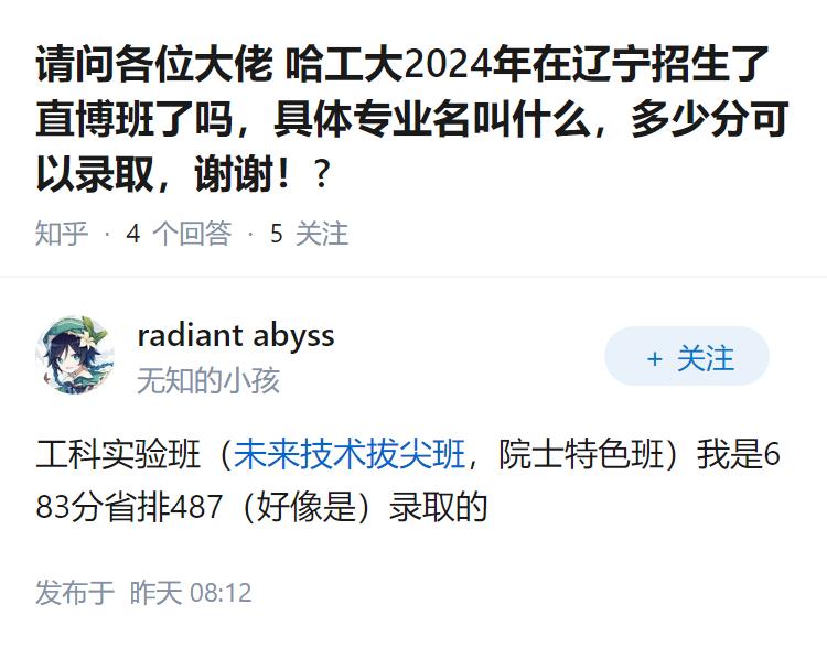 请问各位大佬 哈工大2024年在辽宁招生了直博班了吗,具体专业名叫什么,多少分可以录取,谢谢!?