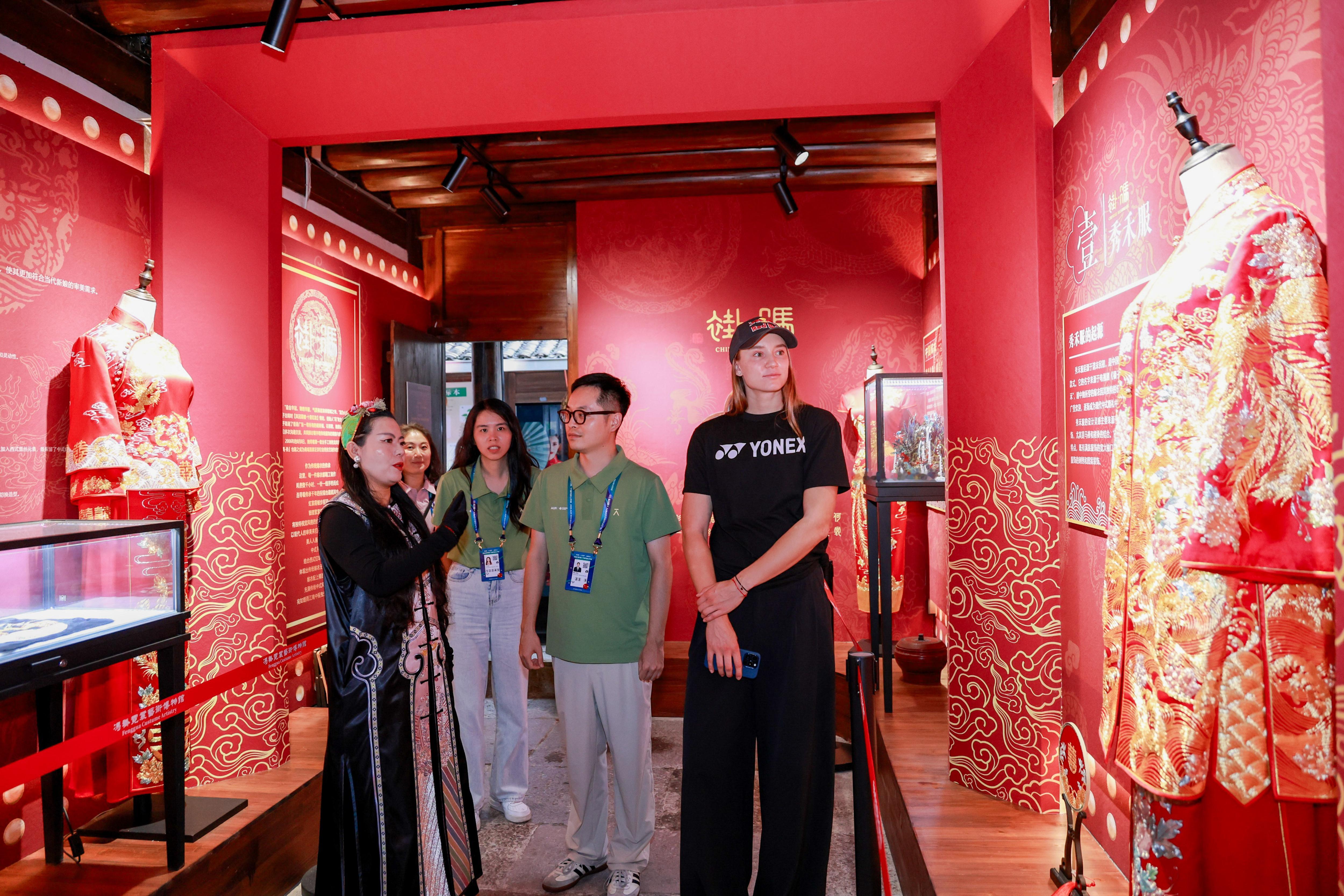 她是主动要求赛事安排宁波观光,而且提出了特定的要求,希望去一个有悠久历史和传统的地方。安排!宁波公开赛为她挑选了走马塘村,中国进士第一村哦,这可是出过70多位进士的学霸村。莱巴金娜穿上汉服,全程笑得合不拢嘴;C位图她手上拿的扎染,也是她自己在当地艺人指导下制作哒!