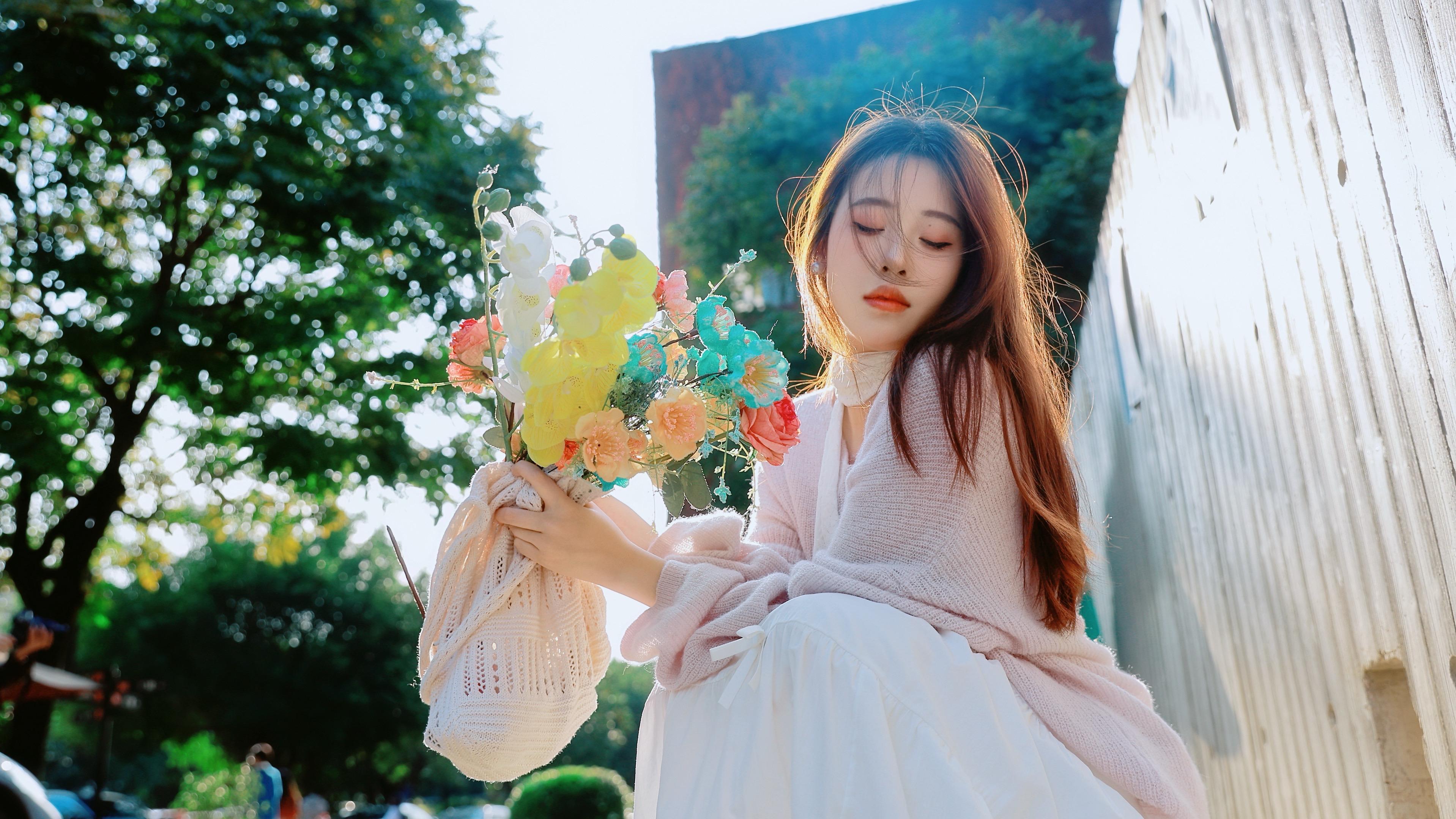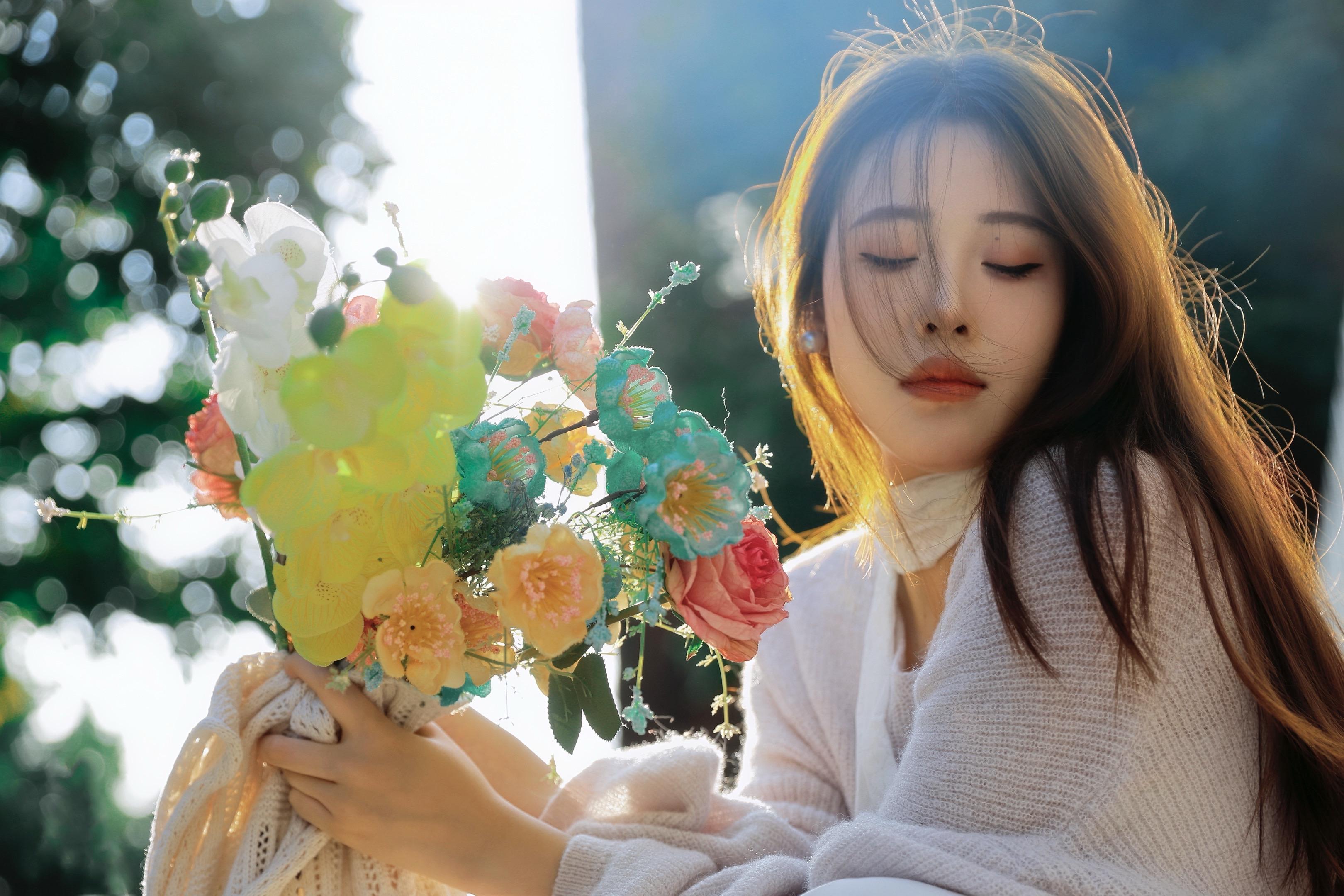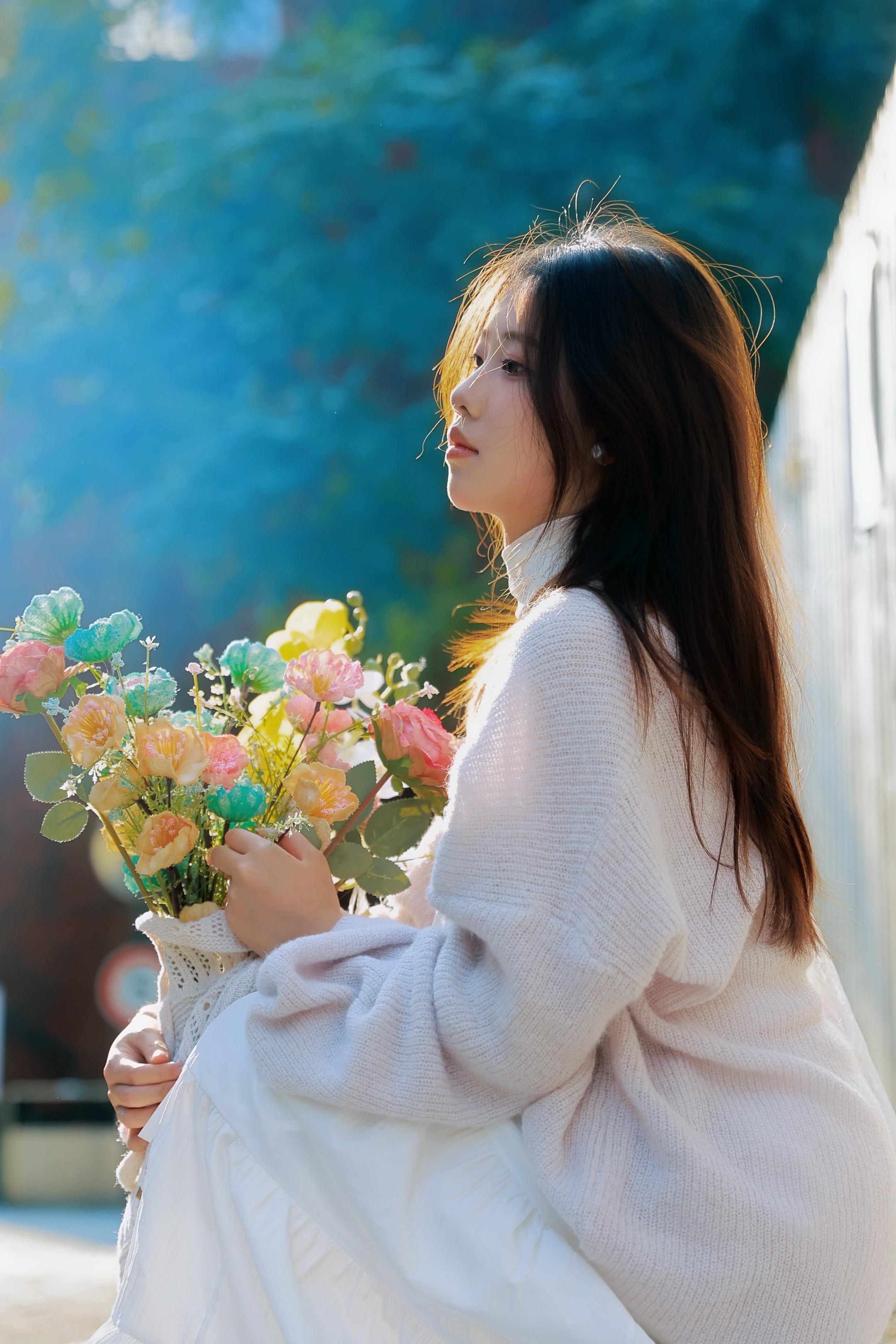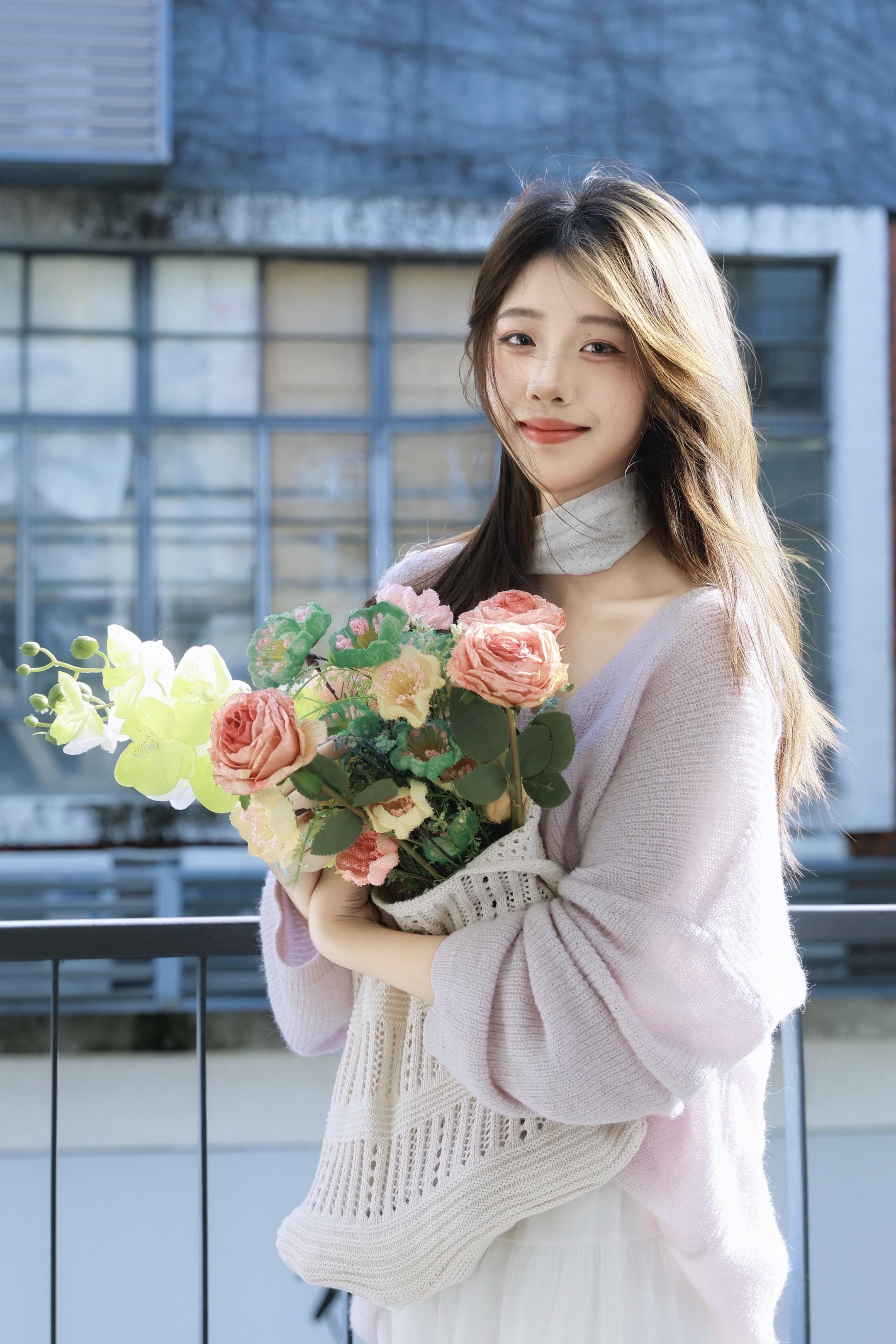 当阳光洒在身上,抱着花束的那一刻,突然明白:幸福不过是这样简单又美好的瞬间~