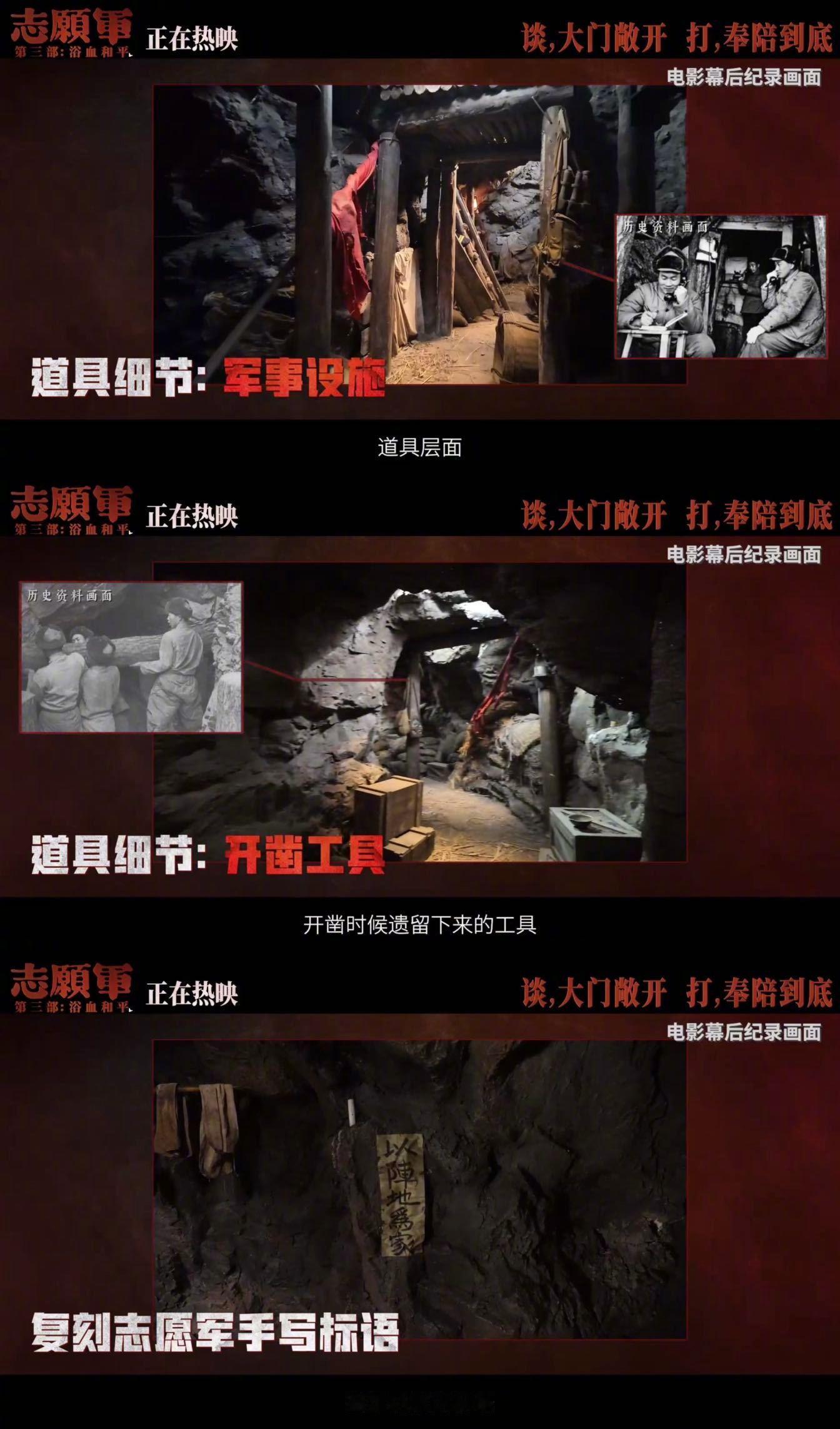 上甘岭坑道战凸显志愿军作战智慧志愿军一锹一铲凿出地下长城 再一次被《志愿军:浴血和平》剧组的诚意与用心震惊到!在今天发布的坑道战特辑中,为了重现那座历史上的“地下长城”,整个制作团队深入研究历史资料,尽最大可能还原当年坑道的内部结构。从岩壁上人工开凿的斑驳痕迹,到坑道内每一处军事设施与生活道具的摆放,都极力追求真实。为了让电影还原度更高,剧组还使用了震动平台模拟敌军轰炸时的猛烈震感,让观众隔着银幕也能感受到坑道内紧张的氛围。这种对细节的坚持,不仅是对历史的尊重,更让今天的人们能跨越时空,真切感受到那段岁月的艰辛和震撼。想再去电影院仔细看看这段“坑道战”,冲了冲了!