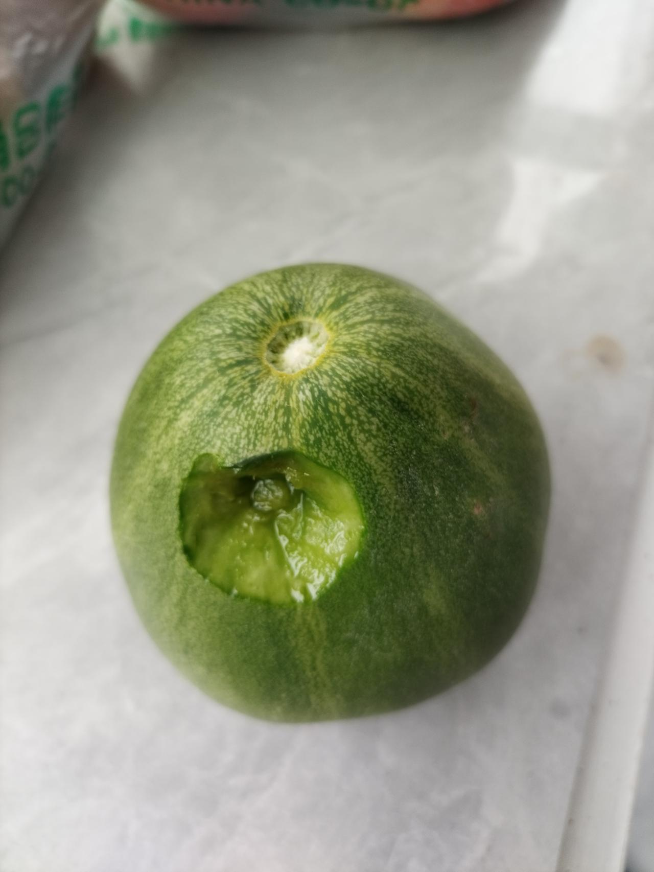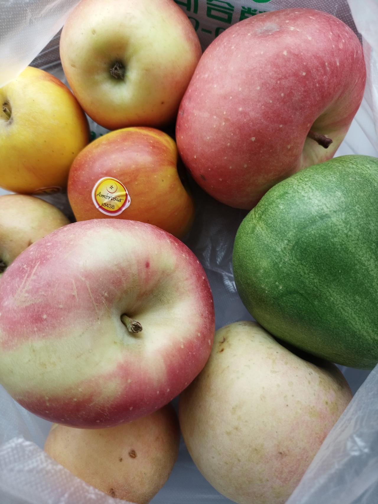 我是不是有点包屈? 很少买正式标价的水果。 今天又买了两袋水果,一袋一元钱。 超市里遇见这两袋水果,塑料袋儿没封口敞着袋儿摆着卖。 我一看摸了摸水果没有烂的,也没软乎,只是这几个苹果上有点儿干巴,不是烂点,并且里边还有一个香瓜。 回家过称,两袋7斤1两。 别的不说,只说这香瓜表皮这点烂,用小刀抠下去,就是一个很好的香瓜。 超市标价香瓜4一斤元,回家一称这香瓜350克。 前几天买了一袋两元钱的南果梨,现在还没吃完,今天又买了两袋打折水果。 你们说我还能不能买个正常标价的水果? (图1)(图2)是今天买的两袋水果2元钱。