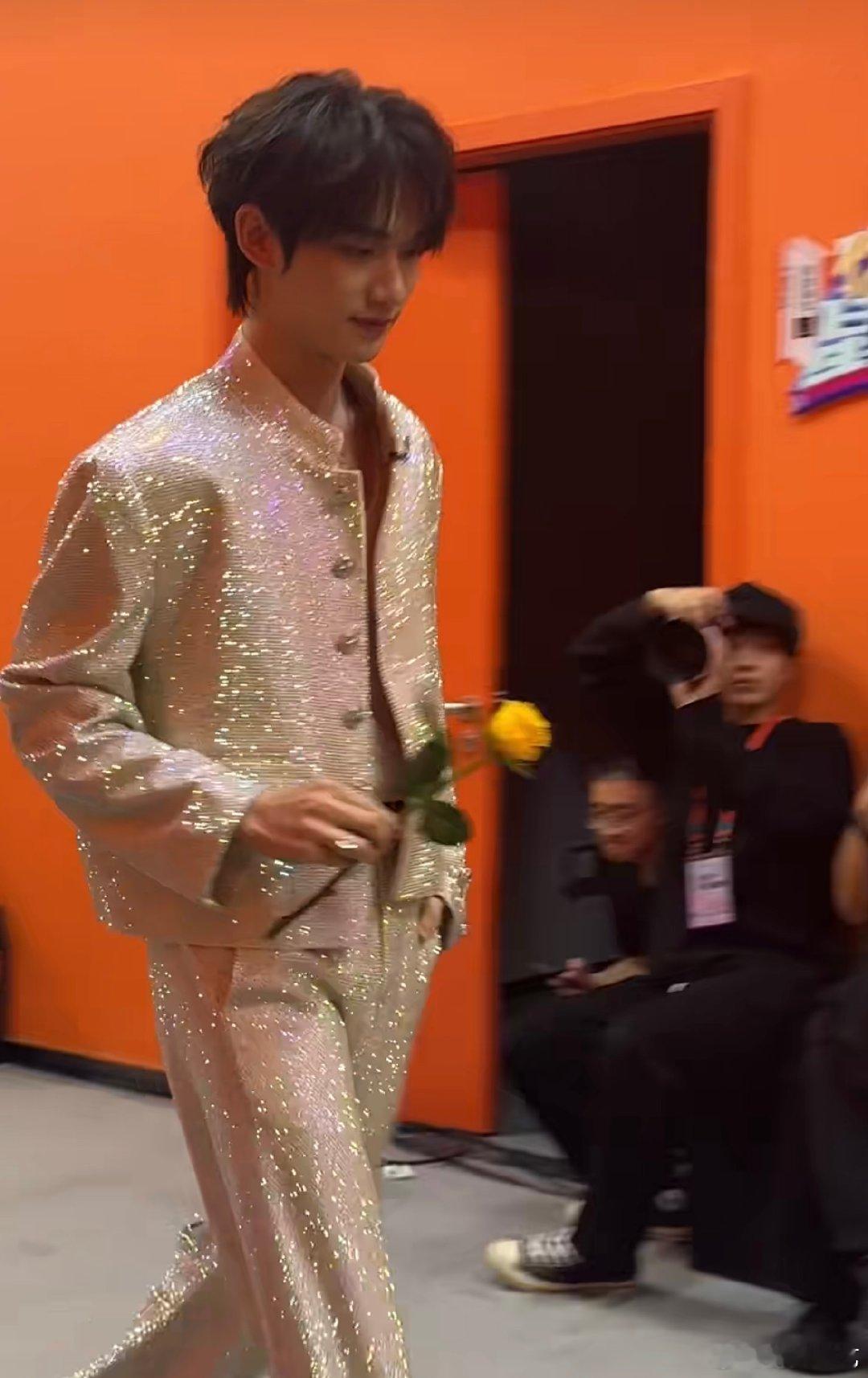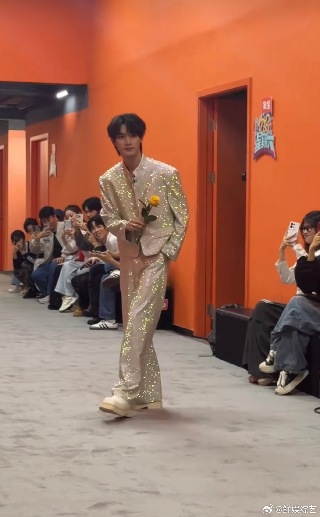 丁程鑫手持黄玫瑰走秀 少年感与成熟气场完美融合,黄玫瑰更是点睛之笔,帅出新高度!你好星期六