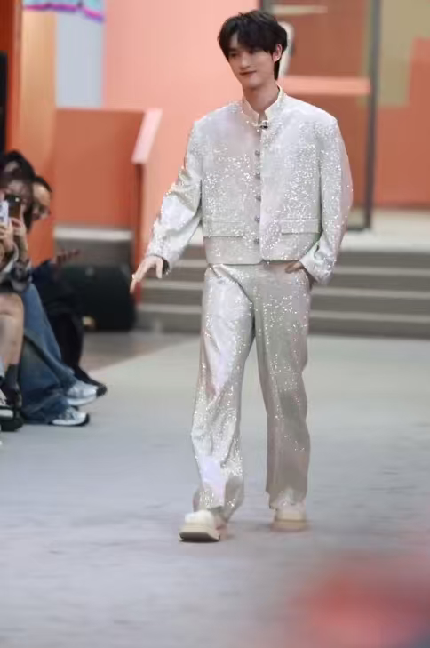 丁程鑫闪钻套装黄玫瑰造型,丁程鑫走秀part,欢迎丁少霸总来袭,这个走路粉有福啦,快来看看小丁走秀时刻吧~