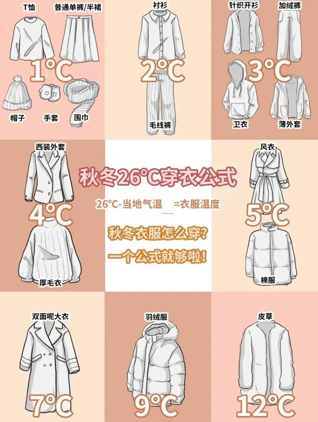 🌈当天温度+衣服温度=26°(衣服温度参考图片)