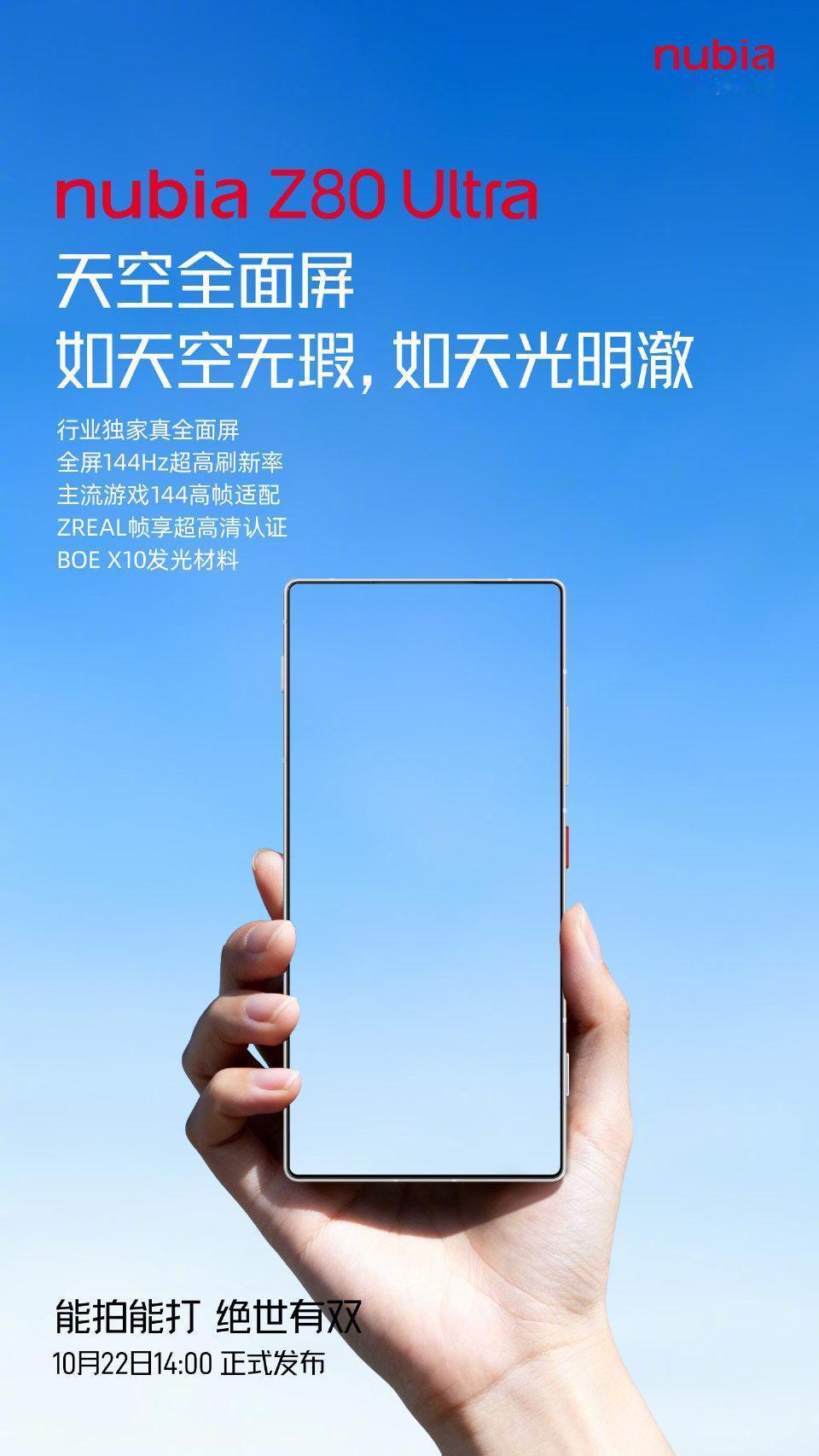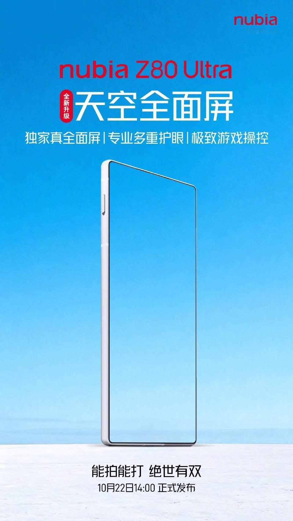 努比亚Z80Ultra这一次的屏幕,升级成为了「天空全面屏」,也是花了很多心思