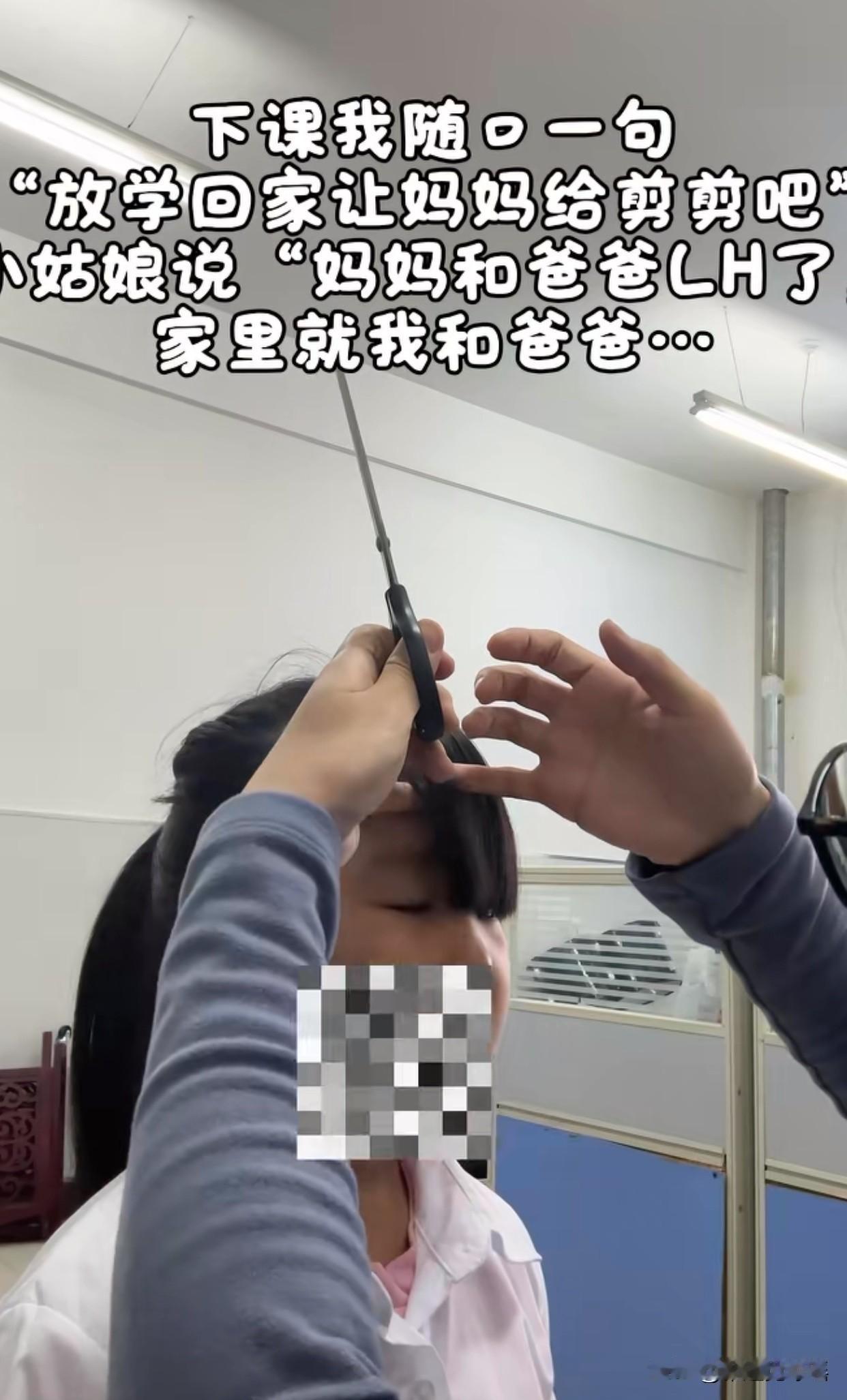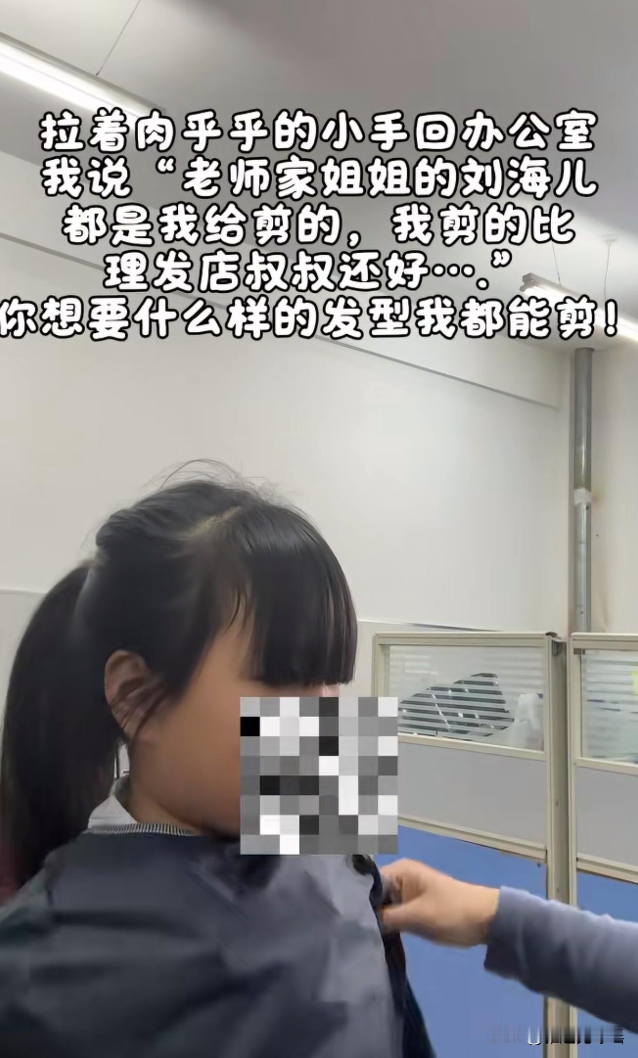 “鼻子酸了!” 黑龙江一位音乐老师课间做了件特暖心的事! 用普通手工剪刀帮学生剪刘海。小女孩父母离异,跟着爸爸生活,刘海长了也没人打理。老师没多说啥,自然地用“给我家姐姐也这么剪”当理由,细心帮她修剪。孩子小声说“剪短点能撑久些”,听得人鼻子一酸。 说实话,我觉得老师最难得的是那份分寸感。她没追着问家里的事,却用行动默默维护了孩子的自尊。这把剪刀修的不只是刘海,更小心呵护了一个小女孩敏感的心。这种体贴比直接的同情更珍贵。 教育中这种小小的温暖瞬间,看似平常,却可能成为孩子心里的一束光。如今好老师早不只是教知识的,更是能读懂孩子心事的人。真心觉得,这样的教育才真正做到了育人育心。