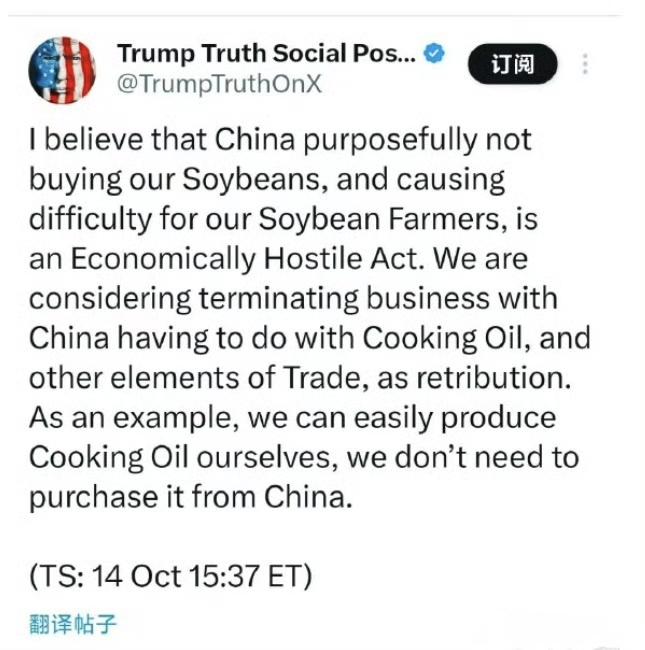 老美现在还揣着旧时代那种资本主义霸权心态,有利它的你必须做,不利它的一律禁止。 但是,中国早就不是旧时代的中国了,老美现在还搞不清楚状况,还在那自以为是。 中方回应特朗普指责停止进口美大豆美国大豆出口