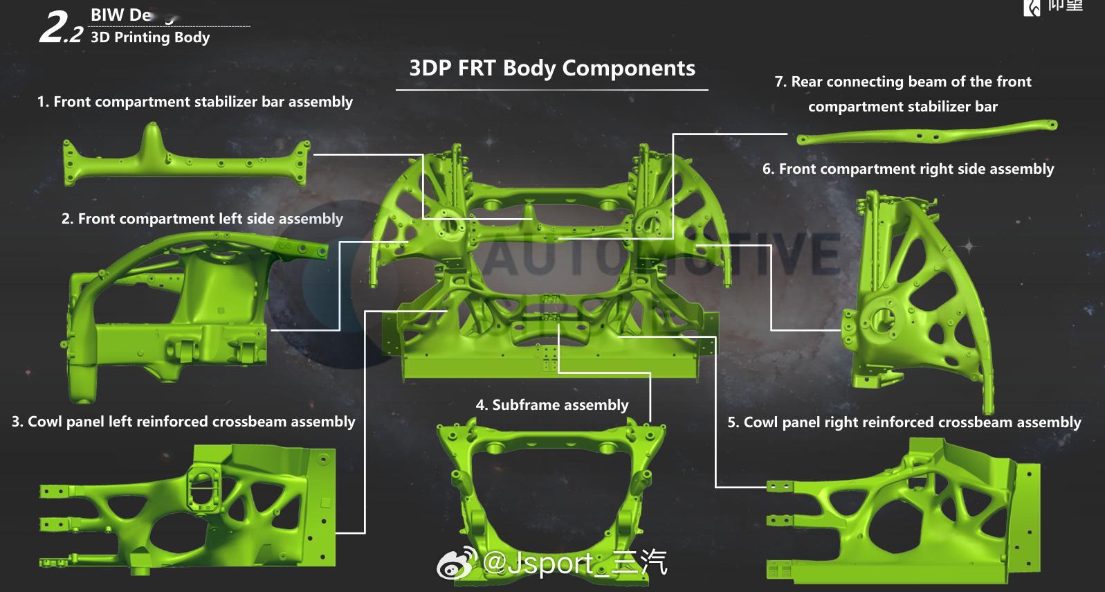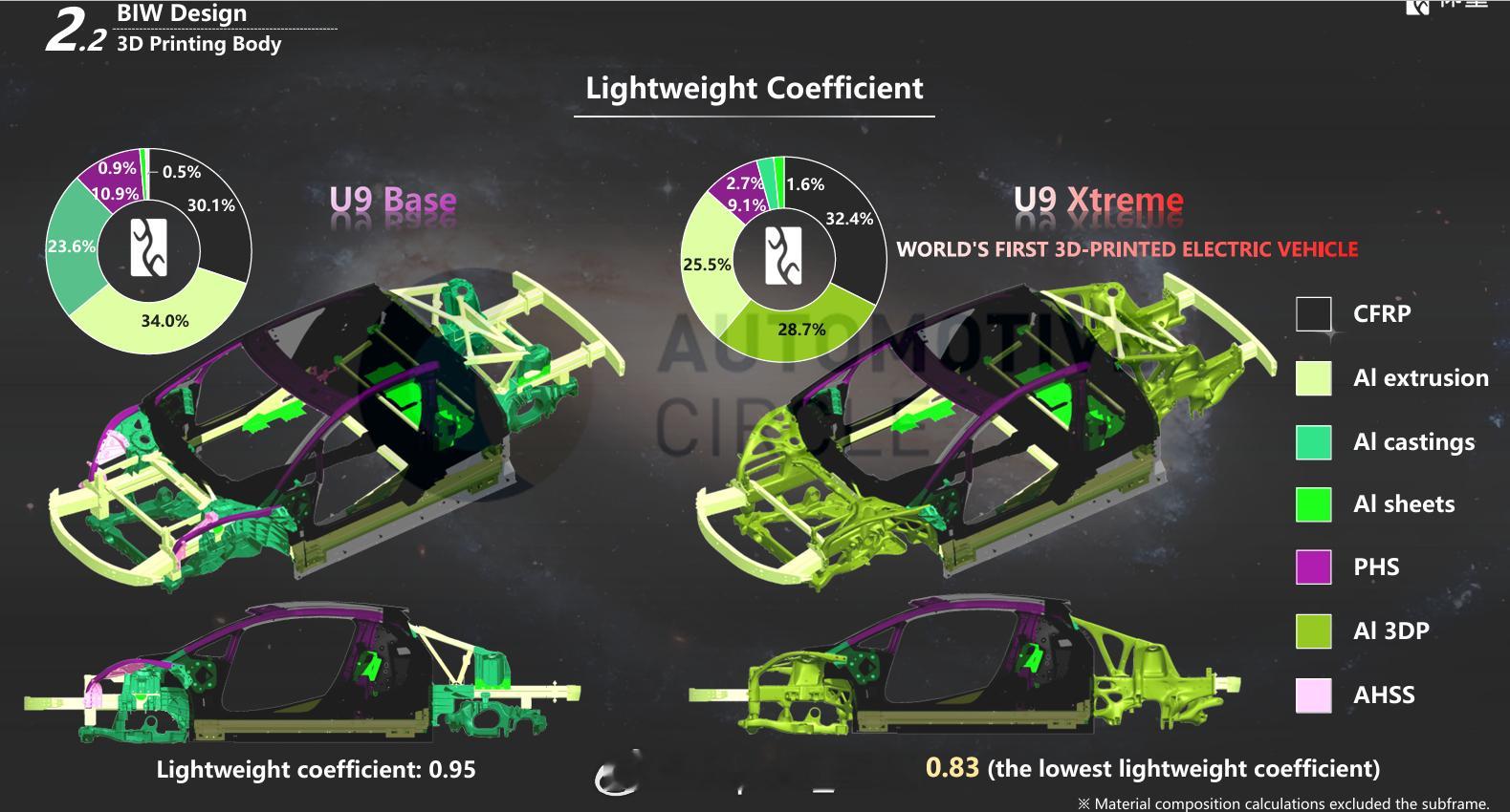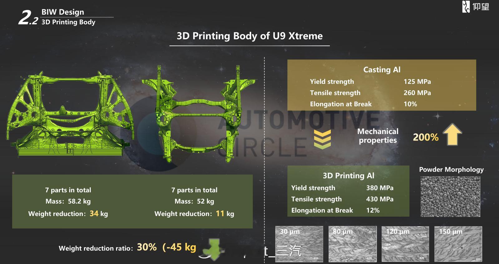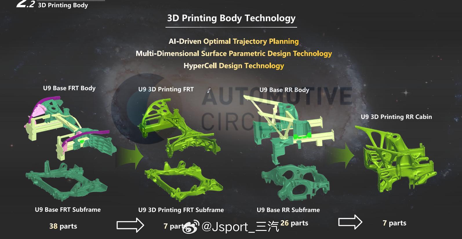 U9的前后车身实现了3D打印!