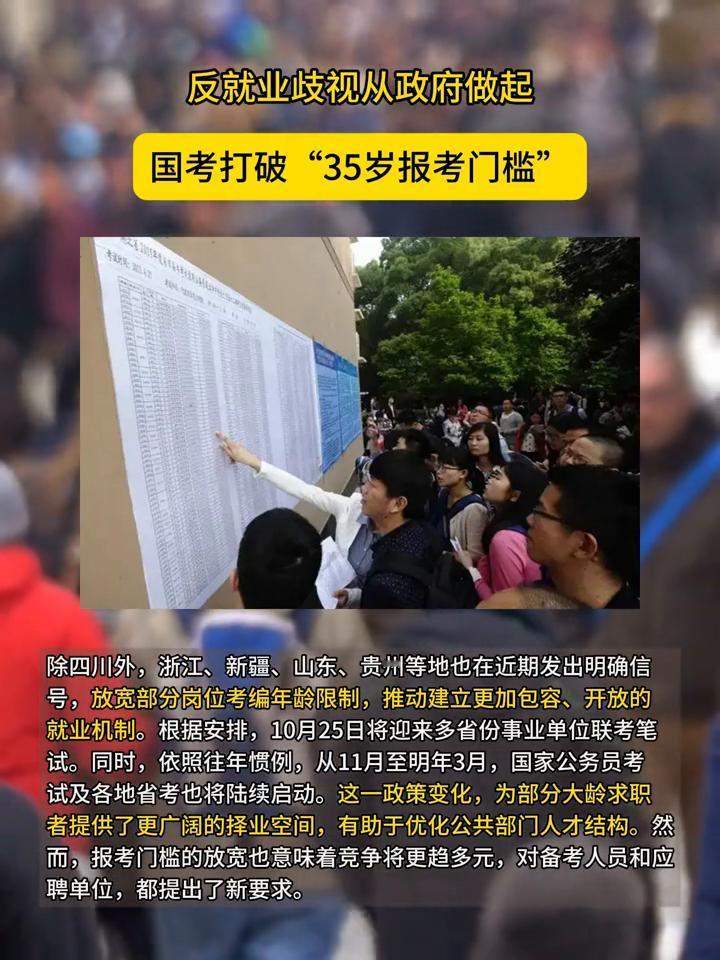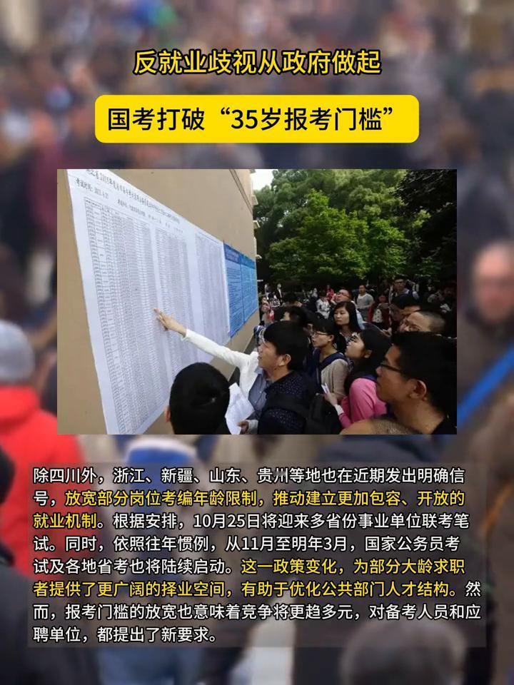 反就业歧视从政府做起,国考打破"35岁报考门槛"。 中央机关及其直属机构2026