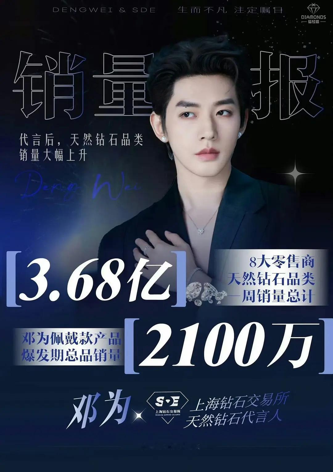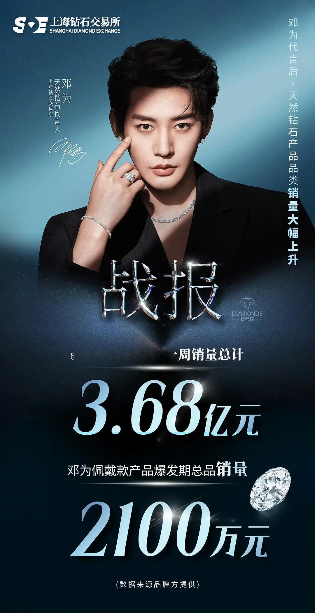 WOC!邓为代言上海交易所天然钻石出官方战报了!8大零售商天然钻石品类一周销量总计3.68亿元❗️❗️