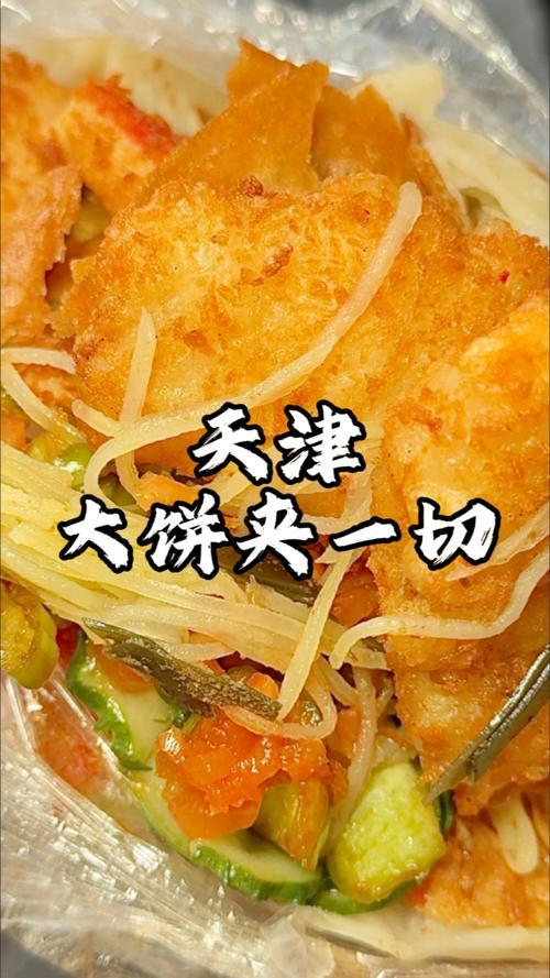 大饼夹一切!这口气,够豪横,够乍唬,好像除了手指头,都能夹起来吃进肚子里! 那么,天津大饼都能夹些嘛呢?请看—— 大饼夹棒槌、大饼夹果篦、大饼夹果头、大饼夹糖三刀,光是油条系列就有这么多品种。 当然了,油炸货还有很多,例如:炸卷圈、炸茄盒、炸藕盒、炸豆腐、炸河虾、炸蚂蚱等等。 还有很多的酱货,可以用大饼夹着吃—— 大饼夹牛肉、大饼夹驴肉、大饼夹羊杂、大饼夹里脊、大饼夹头肉、大饼夹杂样,简直就是数不过来! 为什么天津可以“大饼夹一切”?那是因为天津的大饼好、真好! 天津是用2斤面粉烙1张大饼,其直径足有30~40公分!天津的大饼大、真大! 并且那饼烙的是外酥里软、少油多层。是其他地方的所谓的葱油饼、酱香饼等的饼们,所无法相比的! 所以,天津的大饼就可以夹一切! 天津大饼还有一个特点就是:饼放凉了、时间久了,可以切成丝,做闷饼、炒饼或者是烩饼吃,依然是相当美味。 遗憾的是,现在真正意义上的“大饼”少见了,市场上多是所谓的家常饼。 不过,“大饼夹一切”依然如故、大肆招摇……