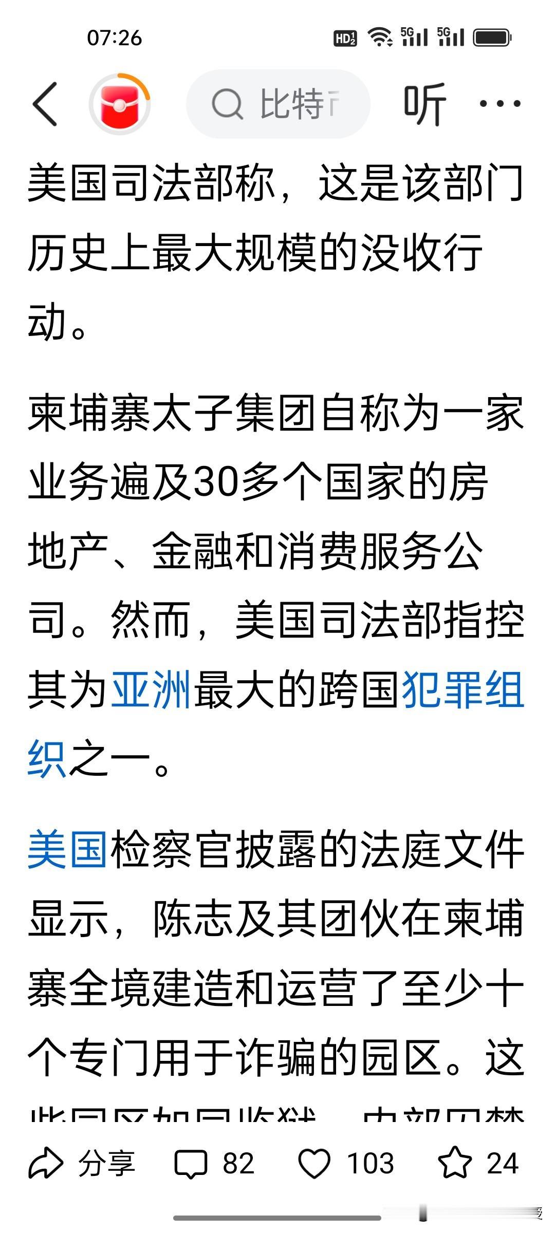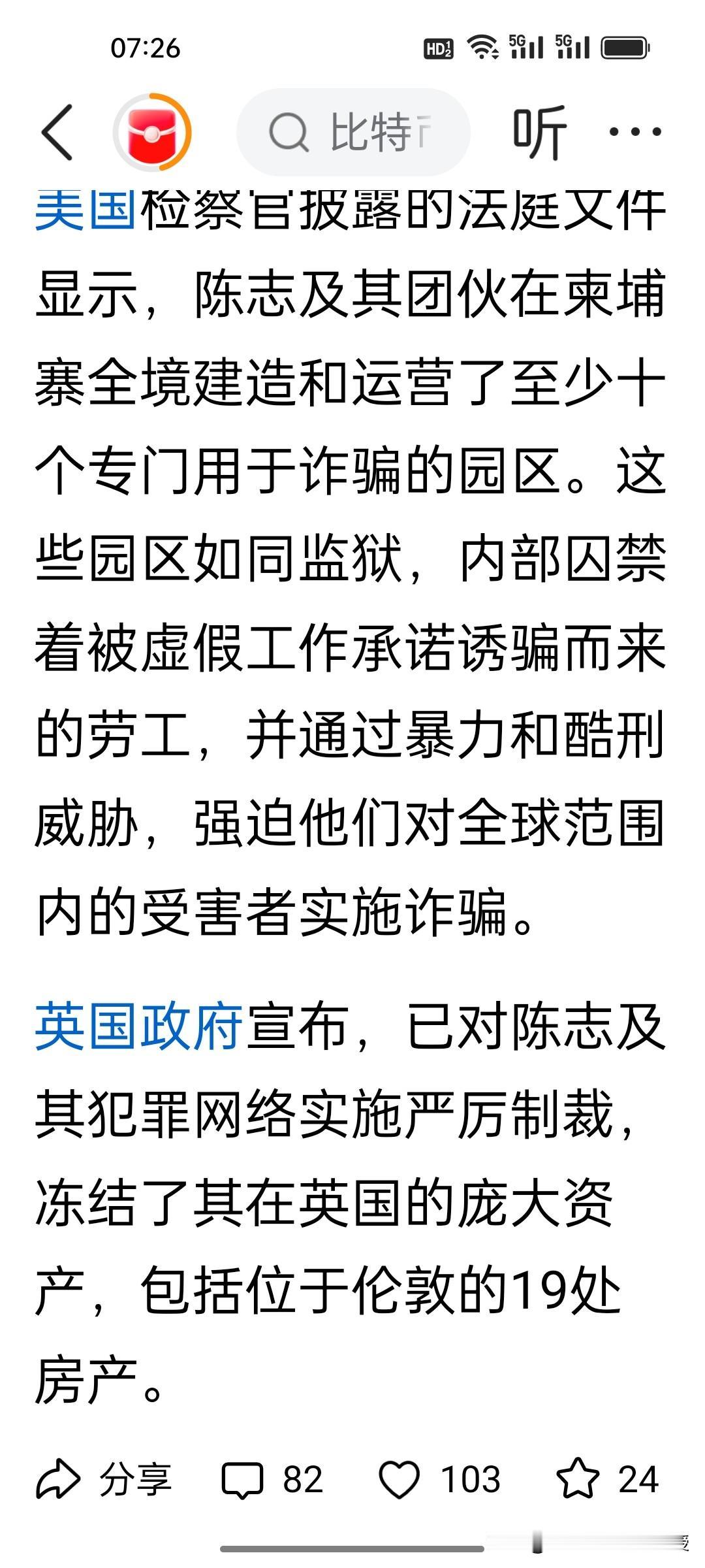 又是熟悉的操作啊!美国司法部近期发起了史上规模最大的资产没收行动,目标直指柬埔寨电信诈骗园区头目,成功收缴其持有的13万枚比特币,价值高达1069亿元人民币。 英国在七年前没收了在中国非法集资的中国女富豪钱志敏的6.1万枚价值430亿人民币的比特币。 美国则在2023年因为反洗钱罪罚了币安创始人加拿大籍华裔赵长鹏72亿美元,还判了四个月监禁。 “天上人间”老板覃辉逃到美国,因为制造虚假身份证件,移民欺诈罪被判六个月监禁并没收了美国所有资产。 许家印妻子丁玉梅在英国的38套房产近期也被英国政府全部查封。 刚刚看到《每日经济新闻》报道,美国司法部又干了一件史无前例的大事,号称历史上最大规模的没收行动,那就是没收了柬埔寨太子集团拥有双重国籍的诈骗园区头目陈志的13万枚比特币,价值1069亿元人民币,英国政府则冻结了陈志在英国的19处房产。 这也给所有逃往英美试图隐藏非法所得的人敲响警钟:海外绝非法外之地,别以为逃到海外就能万事大吉,其实,无论逃到哪里,用违法手段攫取的财富终将被这些国家“磨刀霍霍”地盯上,依法追缴是逃不掉的,等待的只有法律的严惩和最终的一无所有。