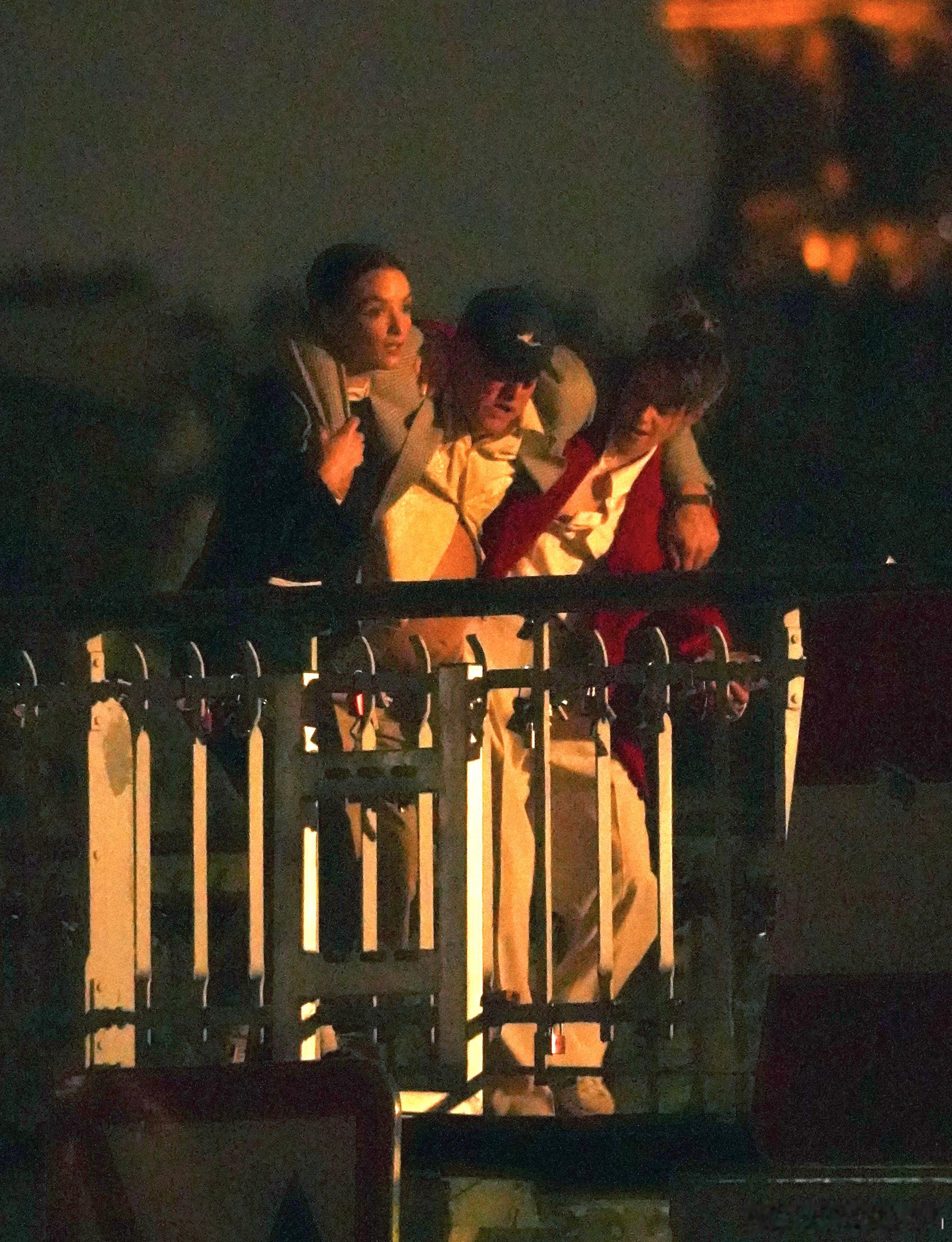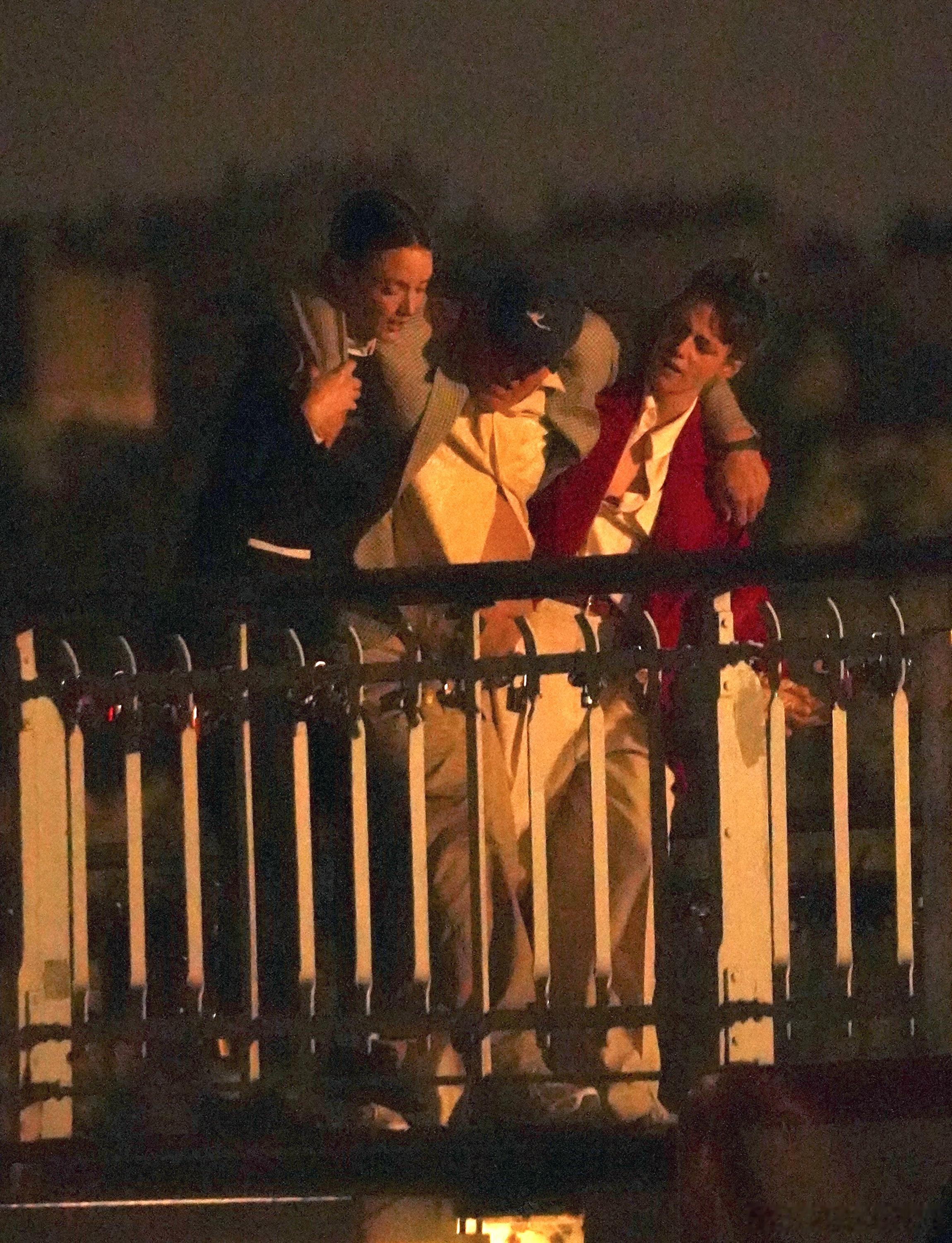 Kristen Stewart克里斯汀斯图尔特在法国巴黎为新片《Full Phil》开工,拍摄一场和Charlotte le Bon一起架走Woody Harrelson的戏