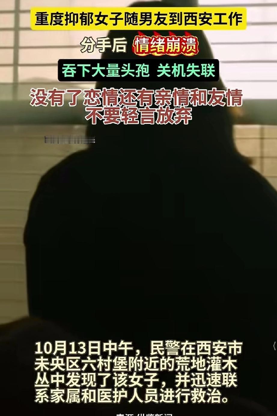 重度抑郁女子随男友去西安工作,分手后女子情绪崩溃吞下大量头孢关机失联。