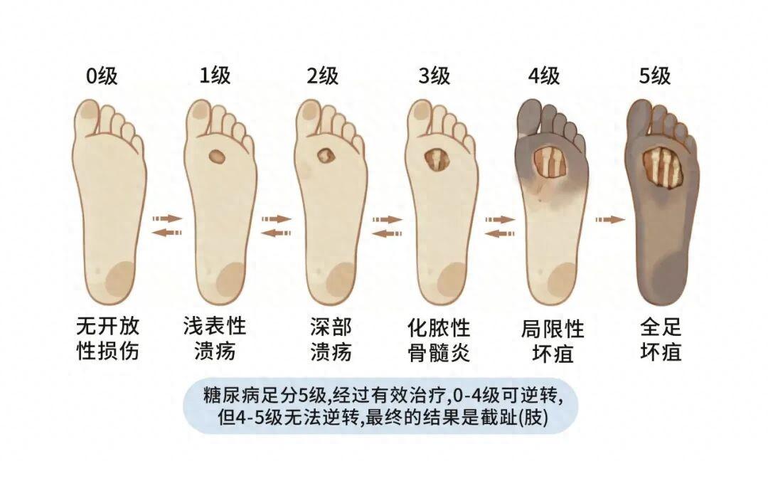 可惜没有后悔药!”浙江一男子剪脚指甲,不慎剪破拇趾边缘,出血并不多,他贴了一张创可贴就没再管了,可过了几天,伤口不仅没愈合 ,开始红肿、发痛走路也磨得难受,后来竟磨出一个水疱,破了之后一直流脓液,一个月了也不见好,最后导致10根脚趾被全部切除! 谁能想到,一次再平常不过的剪脚趾甲,竟然成了一场长达两年、最终夺走双脚十趾的战争的开端。陈建国(化名)现在只能在轮椅上活动,回想当初,一切都像一场荒诞的噩梦。但这并非意外,而是一场由他自己长期的轻视所导演的,身体对他发出的最严厉的惩罚。一个微不足道的小伤口,到底是怎么一步步吞噬掉一个人的健康的? 悲剧的种子,其实早在二十五年前就埋下了。陈建国跟糖尿病打了四分之一个世纪的交道,可在他心里,这根本不算个事儿。他觉得血糖高嘛,太常见了,隔壁邻居不也一样?这种想法给了他巨大的安全感,让他心安理得地无视家人的劝告。 红烧肉、大馄饨,这些心头好他一样没落下,过年过节的糖果零食更是来者不拒。家人让他控制饮食、按时吃药,他总摆摆手,一句“没事,我身体好着呢”就把所有关心都挡了回去。这种“心里有数”的自信,现在回头看,简直是致命的幻觉,为后来身体的全面崩溃铺好了最危险的路。 身体这台精密的机器,早已被他长年累月的高血糖侵蚀得像个火药桶。都说脚是血糖的“检测仪”,可当警报拉响时,他完全没当回事。糖尿病早就悄悄地破坏了他身体的防御系统:末梢血管变得脆弱,血液送不到脚尖,让那里成了一片没有支援的“孤岛”;同时,免疫力也大打折扣,任何细菌都能轻易地在此安营扎寨。 2023年那次剪伤,就是点燃导火索的那颗火星。一个小小的破口,出血不多,他随手一张创可贴就以为解决了问题。这无异于在一片已经失去自愈能力的焦土上,用了一张毫无作用的纸去灭火。几天后,伤口不仅没好,反而红肿疼痛,走路一摩擦,还磨出了水疱。 水疱破了,脓液就没断过。他就这么硬生生拖了一个月,直到右脚肿得像个发面馒头,皮肉发黑发紫,流淌着黄绿色的脓液,散发着酸臭味,才被家人送进医院。医生一看就下了定论:糖尿病足,一种极其凶险的并发症。 为了保命,医生切掉了他坏死的右脚大拇趾。陈建国天真地以为,割掉了烂掉的地方,这事儿就算过去了。可他想错了,这根本不是结束,而是多米诺骨牌倒下的第一块。两个月后,第三根脚趾也开始发黑。 接下来的日子,成了一场绝望的循环。每当医生切除一处坏死的组织,旁边的健康部位就迅速跟着溃烂。他后来转到浙大邵逸夫医院糖尿病足中心寻求更专业的帮助,但溃败的趋势已经无法阻挡。在不到两年的时间里,他双脚的十根脚趾,被一根根地全部切除。 如今坐在轮椅上的陈建国,悔不当初。他说如果能重来,一定听医生和家人的话。他的故事在网上传开后,很多人都说,自己家里就有这么个“不听劝”的亲戚。这说明,陈建国的悲剧并非个例,它给所有糖尿病患者敲响了警钟。 从他的惨痛教训里,我们应该学会一种“小题大做”的智慧。足部护理不是可有可无的建议,而应该升级为一套“高规格的日常仪式”。比如修剪趾甲,就该像进行一次微型手术:温水泡软,用专用工具平着剪,留下一两毫米的白边,再把边缘磨光滑。 每天都要像士兵检查武器一样,仔细检查自己的双脚,保持清洁干爽,穿透气舒服的鞋袜。一旦发现任何不对劲,比如破溃或者感染的迹象,不能有丝毫犹豫,必须立刻把它当成最高级别的警报,马上就医。 在和慢性病这场漫长的拉锯战里,根本不存在侥幸。你对身体的每一次忽视,它都会一笔一笔记在账上。陈建国失去的十根脚趾,就是这张账单上最沉重的代价。真正的健康,就藏在对每一个微小细节的敬畏和守护里。