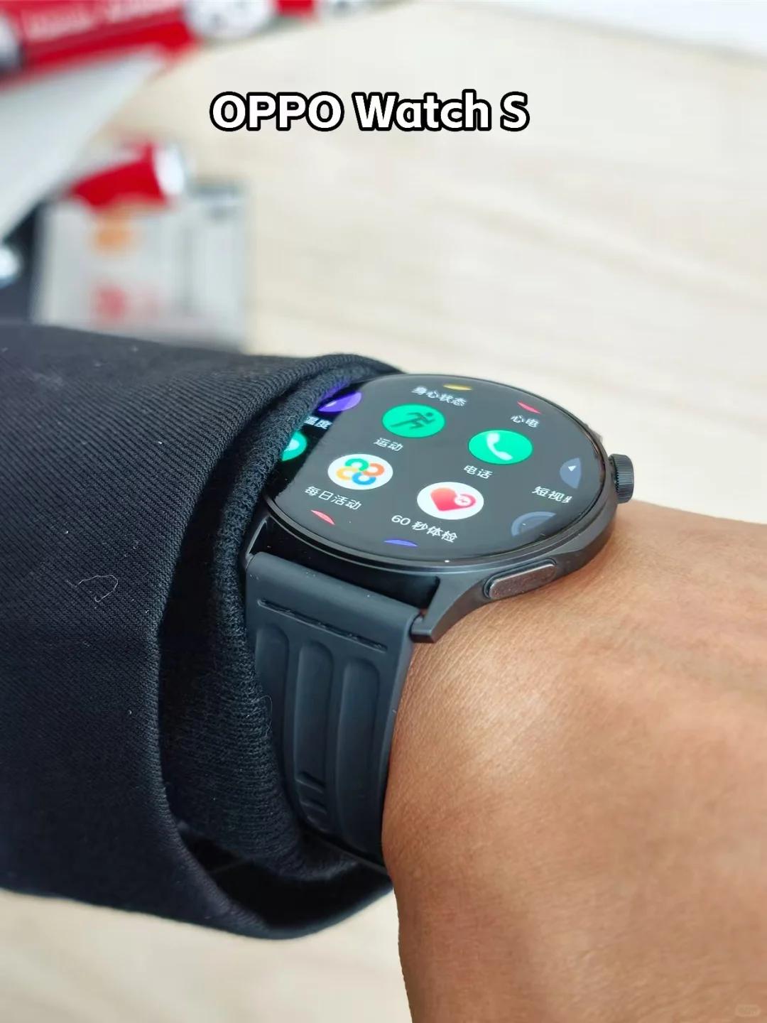 喜欢戴智能手表的,这个烦恼少不了... 现在智能手表功能越来越多了,但是越来越厚了,夏天穿短袖还好,但冬天穿了长袖就容易挡袖口,感觉很不美观,手臂像是凸起了一块东西,超级怪的。 现在拿到了OPPO Watch S,据说厚度不到9毫米,一对比确实明显,特别是穿长袖对比苹果手表、华为手表,OPPO明显不会凸起、不会挡袖口,而且薄薄的感觉很舒适。 薄了这么多,OPPO Watch S的功能却没啥阉割,血氧、体温甚至ECG心电图也有,这可能是1500价位少有支持ECG的,其他手表微信、看导航、流体云看手机外卖进度等通知也是和其他OPPO表一样,就不知道卖多少了,有想买的吗? 手表 智能手表 OPPOWatchS 苹果手表 华为手表 OPPO手表