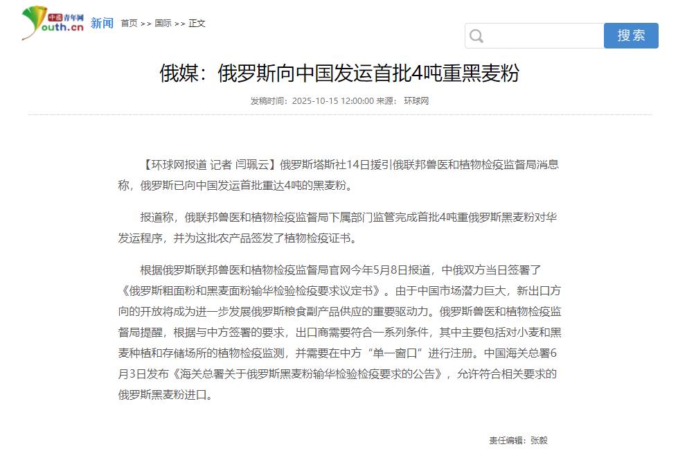 据俄媒10月14日报道:俄罗斯向中国发运首批4吨重黑麦粉,这4吨黑麦粉对于咱们这14亿人口大国来讲可真是有点少,为什么中俄合作才运了4吨黑麦粉呢?这4吨俄罗斯黑麦粉看着不多,其实是中俄农业合作往前推的实招。 这4吨黑麦粉能到中国,可不容易,今年5月8号,中俄签了个《俄罗斯粗面粉和黑麦面粉输华检验检疫要求议定书》。 这协议可严了,俄罗斯那边得对种黑麦的地方,年年查有没有小麦矮腥黑穗病菌;加工的时候,还得装澳洲蛛甲诱捕装置,防虫害。 每批货都得带着符合国际植物保护公约的检疫证书,连种黑麦的地块GPS坐标、用的啥农药都得记清楚,一共23项指标呢! 中国海关也不含糊,开发了个智能审单系统,30秒就能把证书核验完,还能评估风险,再加上区块链技术,数据全程都能查得到。 这么严为啥呢?就是为了食品安全,上海有个进口食品公司的采购经理李薇,拿着检测报告说,俄罗斯这黑麦粉蛋白质含量有14%,灰分含量才0.55%,湿面筋值32%,比国内的好多了。 有些国家在农产品里乱加东西,中俄可不玩这套,用制度把质量关把得死死的。 首批就运4吨,其实是“试试水”,俄罗斯农业部长帕特鲁舍夫说,这就像新开的航线,先看看每个环节能不能接上。 在黑龙江绥芬河口岸,海关的人拿着手持终端,把检测数据实时传到中俄监管平台,这样通关效率提高了60%,以后大规模进口就不愁了。 数据也说明,中俄在农产品上的合作潜力大着呢,2025年前三季度,中俄农产品贸易额有87亿美元,同比增长34%,2023年还签了个2.5万亿卢布的粮食大单,说好12年内要给中国供应7000万吨豆类、谷物和油籽。 现在这4吨黑麦粉在华北的面粉厂变成面包,山东青岛的中俄合资面粉加工厂也快建好了,一年能产20万吨呢!这种“先试点,再推广”的办法,中国改革开放40年都用这招,可灵了。 俄罗斯黑麦粉能“杀”进中国市场,正好赶上全球产业链要变天的时候,以前美国搞贸易战,1930年《斯姆特 - 霍利关税法》一出来,全球贸易萎缩了66%。 2018年贸易战,美国消费者每年得多花500亿美元,可中俄用4吨黑麦粉告诉大家:开放合作才是应对不确定性的好办法。 俄罗斯是全球第三大黑麦生产国,他们那儿的农产品成本低、质量好,有天然的优势,中国烘焙行业规模都超过6000亿元了,对高端面粉的需求每年涨18%,这俩国家正好互补。 2023年俄罗斯对华出口小麦、大豆这些,增速都超过20%,有些国家忙着筑墙,中俄却搞了个“新陆上粮食走廊”计划,一年能周转800万吨粮食,给全球南方国家做了个好榜样。 站在满洲里口岸,看着中欧班列和西伯利亚铁路的动静,就想起这4吨黑麦粉的旅程,跟中俄关系在新时代有点像,有些国家光想着“脱钩断链”,中俄却一起开辟新路子。 2001年加入WTO的时候,中国出口额才占全球4.3%,现在都14.4%了,这4吨黑麦粉,说不定就是中俄农业合作“从1到N”的开始。 更让人期待的是,这种合作模式还在别的领域复制呢,中俄一起培育的耐寒小麦品种,让西伯利亚的单产提高了15%;北极航道一起开发,“冰上丝绸之路”都成现实了。 有些国家用关税大棒想重新规划世界,中俄却用4吨面粉证明:合作共赢的路,比零和博弈的路宽敞多了,也长久多了,这就是大国该有的样子,在不确定里找确定,在变局里开新局。