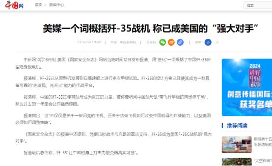 美国《国家安全杂志》12日大赞中国歼-35新型隐身舰载机。报道称,歼-35已进行多次甲板试验,其内部武器舱、隐身式进气口、折叠机翼等设计选择,使之成为一款具备“先发现、先开火”能力的可靠作战平台。 这可不是美国媒体第一次夸中国武器,但这次是真的夸到点子上了。 先说隐身性能,歼-35的正面雷达反射面积只有0.02平方米,相当于一只小鸟的大小。美国F-35C的雷达反射面积是0.5平方米,是歼-35的25倍。 这意味着当美国雷达在150公里外发现F-35C时,可能要等到67公里才能看到歼-35。这种差距在实战中就是“我打你你看不见”的降维打击。 再看动力系统,歼-35配备两台涡扇-19发动机,总推力达24吨,比F-35C的19吨推力强26%。它的最高速度可达1.8马赫,未来换装改进型发动机后能突破2.2马赫。 而F-35C由于设计缺陷,超音速飞行时间被限制在秒级,大部分时候只能当亚音速战机用。在航母甲板上,歼-35还能实现“弹滑兼容”,不仅能从福建舰的电磁弹射器起飞,也能在辽宁舰、山东舰的滑跃甲板上起降。 武器配置方面,歼-35的内置弹舱能携带6枚霹雳-15远程空空导弹,射程超过200公里。而F-35C的弹舱最多只能装4枚AIM-120导弹,射程只有150公里。如果开启“野兽模式”外挂,歼-35还能携带6吨弹药,总载弹量达12枚。这种火力密度在空战中足以形成压制。 体系作战能力更是歼-35的撒手锏,它与空警-600预警机配合,能构建起覆盖数百公里的空中侦察网络。空警-600的CEC协同交战系统,能将航母、驱逐舰、舰载机的传感器数据实时共享,实现“发现即摧毁”的闭环作战。 在福建舰的测试中,歼-35与空警-600、歼-15T组成的作战编队,已验证了“隐身突防+重载打击”的战术可行性。 除此之外生产进度方面歼-35已进入批量生产阶段。央视画面显示,沈飞厂房内有多架“绿皮版”歼-35正在组装,涂装编号表明这些是正式服役前的量产机型。美国媒体预测,歼-35的年产能可能超过50架,只需三四年就能为福建舰提供完整的隐身航空联队。相比之下,美国F-35C的生产因成本超支和技术故障,进度严重滞后。 更让美国头疼的是歼-35的出现彻底改变了西太平洋的力量平衡。过去,美国航母凭借F-35C的隐身优势,在第一岛链内横行无忌。 现在,中国航母搭载歼-35后,不仅能在远海与美军正面抗衡,还能依托“一带一路”沿线的港口和机场,实现兵力投送的战略转型。 正如《国家安全杂志》所言:“当对方的打击力量是真实的时候,威慑力就会更强——而歼-35让中国的海上打击力量变得真实。” 当然歼-35并非完美无缺。它的航电系统和战场网络互联能力,目前还落后于F-35C。但中国在稀土、红外探测芯片等核心材料上的突破,正在逐步缩小这一差距。随着涡扇-19发动机的成熟和氮化镓雷达的升级,歼-35的综合性能有望在未来几年内全面超越F-35C。 美国当年用对付俄罗斯的那套关税战、技术封锁来对付中国,结果搬起石头砸了自己的脚。如今,中国在歼-35等尖端武器上的突破,再次证明了一个道理:封锁只会激发创新,打压只会加速崛起。当美国还在纠结F-35C的生锈问题和电磁弹射器的故障率时,中国的歼-35已经在福建舰上展翅翱翔,书写着属于自己的海空传奇。 来源:中国网 【美媒一个词概括歼-35战机 称已成美国的“强大对手”】